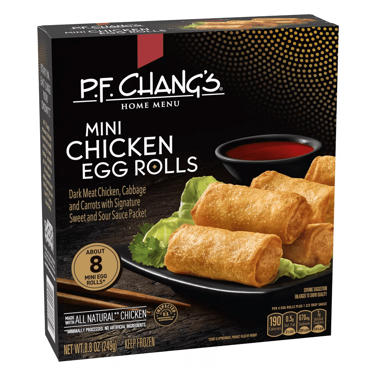 - One 8.8 oz box of P.F. Chang’s Home Menu Chicken Egg Rolls, frozen appetizers