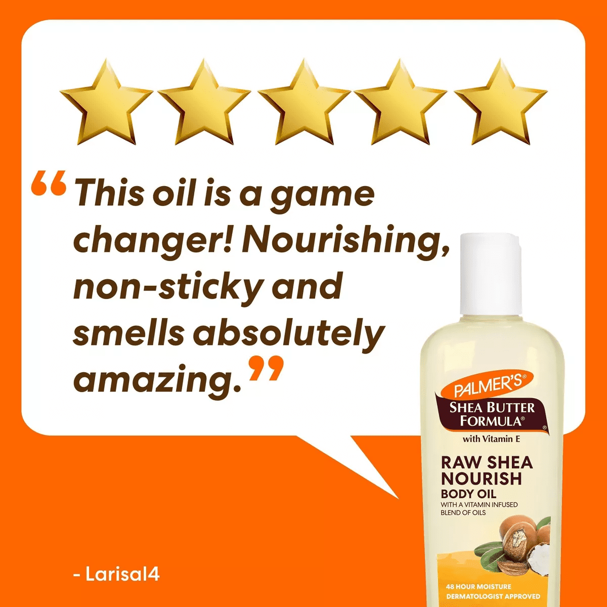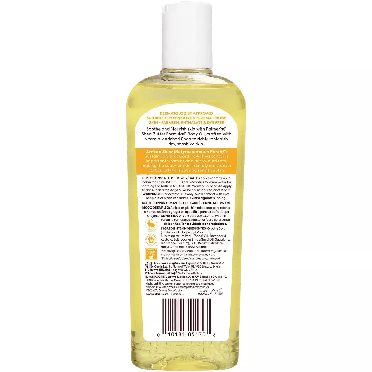Hydrate and replenish skin with Palmer’s Raw Shea Nourish Body Oil, crafted with African Shea butter and antioxidant-rich vitamin E for healthier-looking skin. This bath & body oil can be used as a skin oil or as a bath oil, or any other time your skin needs a moisturizing boost. Instantly absorbs without any greasiness or mess, providing 48 hours of moisture. Palmer’s Shea Body Oil for women or men is dermatologist approved and clinically tested as suitable for sensitive & eczema-prone skin. It is vegan friendly, with no animal ingredients or testing. Free of Mineral Oil, Parabens, Phthalates & Dyes. Proudly made in U.S.A., Palmer’s has been a trusted brand for over 180 years, providing high-quality natural products that are passed down from generation to generation. America’s #1 Body Oil brand Palmer’s uses the highest quality natural ingredients for superior moisturization.