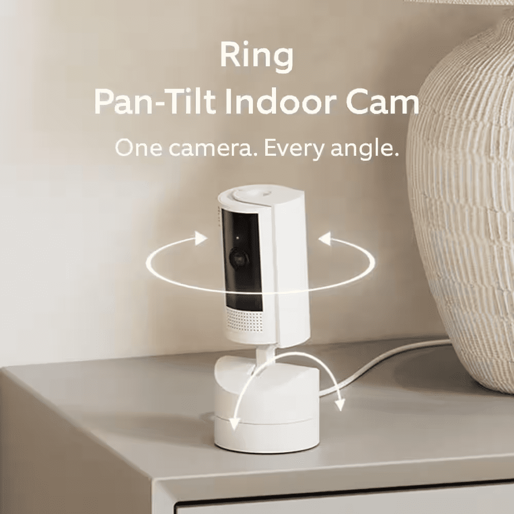 See all around your home and enjoy 360° coverage with the versatile Pan-Tilt Indoor Cam. Get a better view of what’s up and what’s down right from your phone with pan-tilt controllable via the Ring App, HD Video and Color Night Vision. Or see less with a manual Privacy Cover that turns off your cam until you need it next.