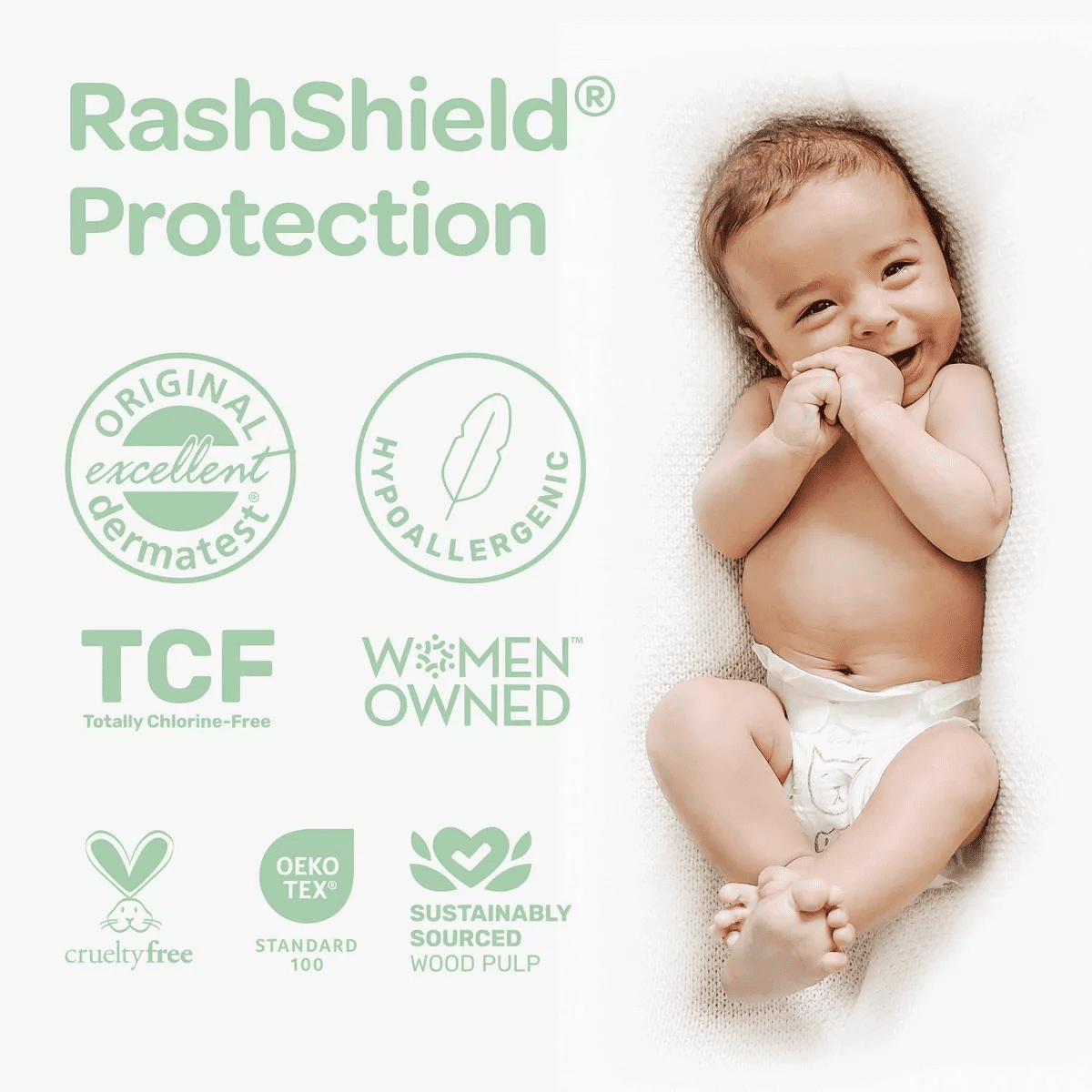 • ​RashShield® Protection — The only diaper designed to help prevent rashes before they start.