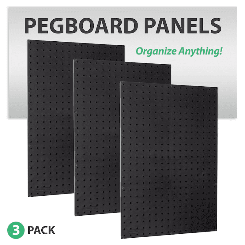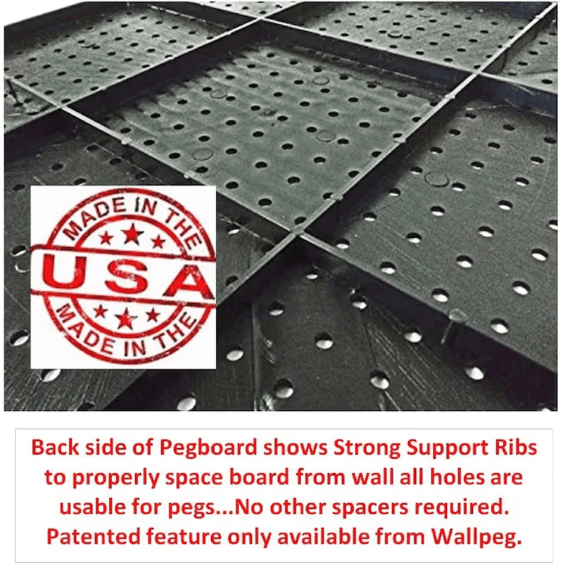 - WallPeg Pegboard and Peg Hook Kit – 24 inch x 48 inch (Full 8 SF) Black Panels with 1/4 inch holes on 1 inch centers