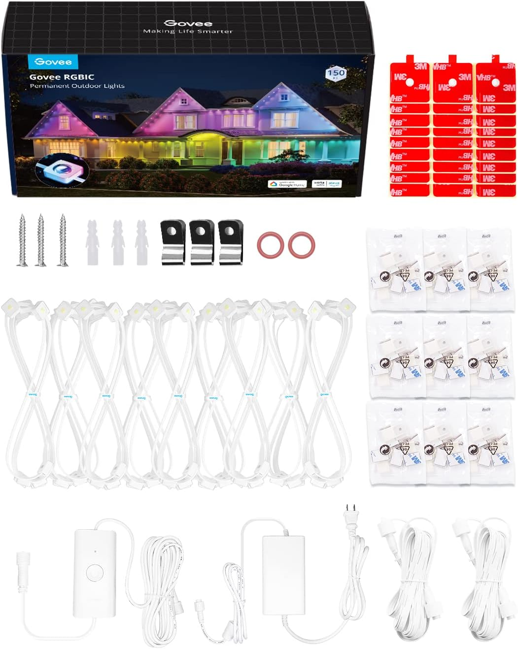 - Simple Installation: Must use provided VHB glue and clips to install each light in 8 seconds. Splice through waterproof joints every 16.4ft and install the patio lights on eaves. Please note that the govee permanent outdoor lights cannot be cut.