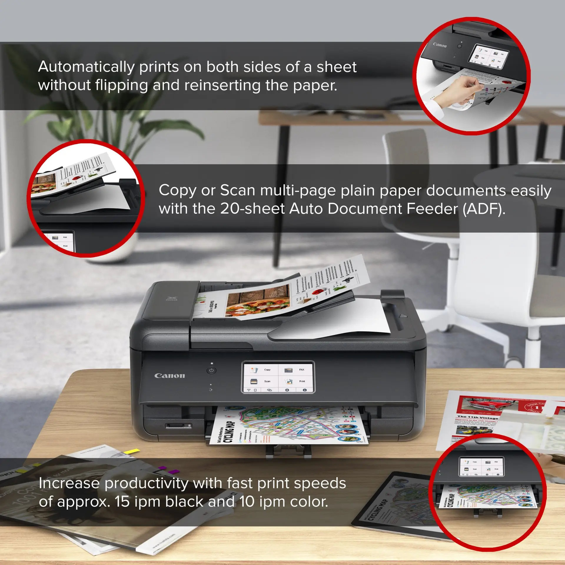 The Home Or Office All-In-One For Any Way You Work.When you need a compact home office printer that can handle all your work needs, the PIXMA TR8622a has you covered. With front and rear paper feeding, a 5-Individual Ink System, 4.3″ LCD Touchscreen, and impressive wired and wireless5 connectivity options, you’ll be able to do it all. The PIXMA TR8622a can easily transition from scanning a multi-page contract with the built-in Auto Document Feeder to printing double-sided homework assignments from online classrooms systems, or a family photo wirelessly from your smartphone. Whether it’s printing documents and reports, or faxing and scanning, the PIXMA TR8622a is the ultimate compact home office printer that’s big on performance and productivity.