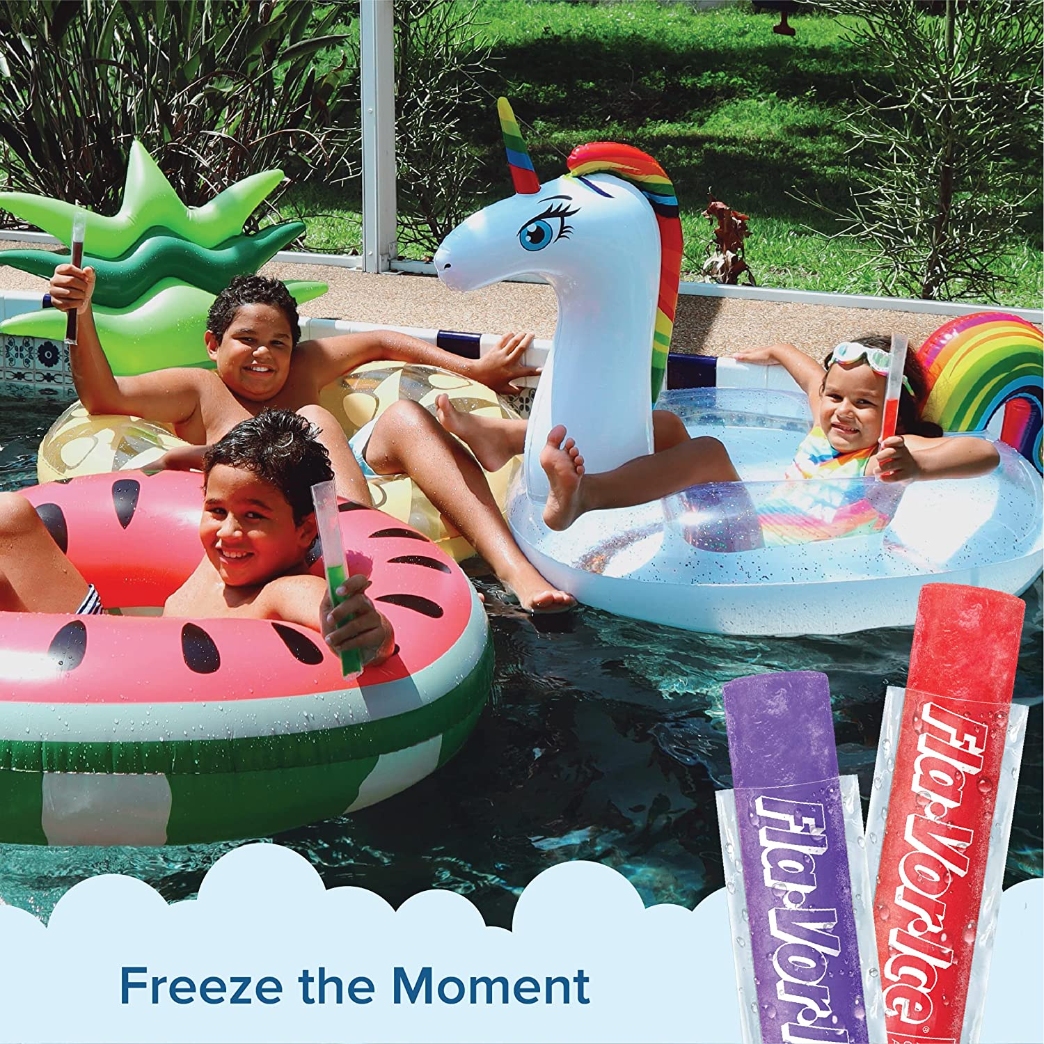 Nothing tastes like summer more than sweet and refreshing Fla-Vor-Ice Fruit Flavored Popsicles. Our iconic freezer pops have been helping families create “melt-free” memories for the past 50 years. Our mess-free bars are great to enjoy just about anywhere – after you cut the top o, simply push your favorite flavor up and taste the delicious fruitiness. Kids love to squeeze our sweet treats with their friends on hot summer days, and since they’re low in calories and fat free, adults can cool o with one too, guilt free. This bulk box is great to take to birthday parties, to parties at the park, to a Fourth of July celebration, or to simply keep in your freezer so your family and the neighborhood kids can enjoy anytime. They are a great alternative to ice cream because they are dairy free, which means everyone can get in on the fun! Fla-Vor-Ice is just the right mix of flavor, sweetness, and smiles; they oer the best combination of both scrumptious and cool. Grab a pouch and create memories that will last a lifetime.