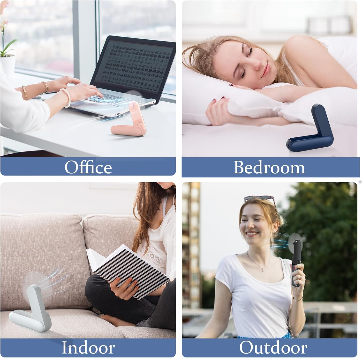 - 【2-in-1 Foldable and Handheld Fan】 When unfolded 180°, it becomes a handheld fan, and when unfolded at 90° or 270°, it transforms into a desktop fan. Its pocket size makes it perfect for indoor and outdoor use, while the attached lanyard allows for easy carrying on the go. It will be your travel essentials companion.