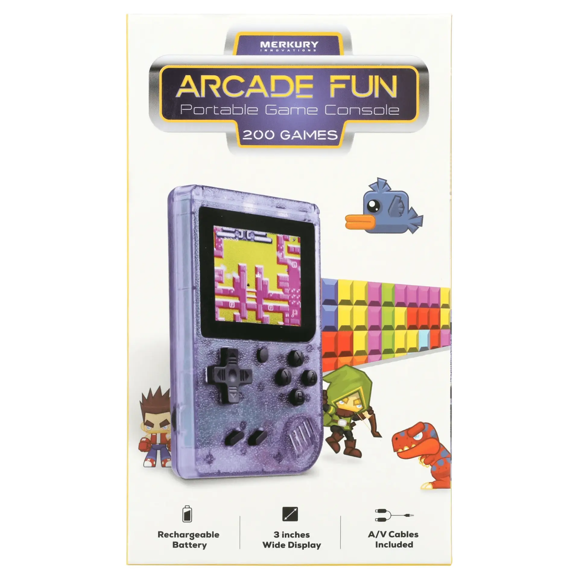 Discover endless fun with the Merkury Innovations Arcade Fun Portable Game Console for Child or Adult. Designed for both adults and children, this console comes in a vibrant purple color. It features 200 preloaded games, including arcade, puzzles, shooting, racing, fighting, and adventure games. The 3-inch backlit LCD screen offers clear visuals, while the slim and portable design makes it easy to carry anywhere. With a rechargeable 3.7V lithium-ion battery, you get up to 6 hours of continuous gameplay. The console also includes AV cables, allowing you to connect to your TV for a larger gaming experience. Perfect for travel, camping, commuting, or relaxing at home.
