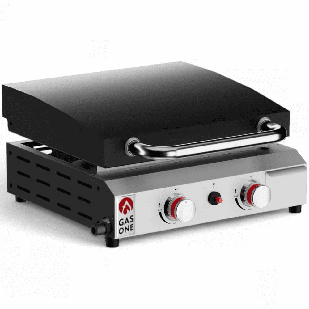 2 Burners Flat Top Grill with Lid, Auto Ignition and Drip Tray – Your Solution for On The Go Cooking!The Gas One grills outdoor cooking propane were designed having in mind superior design and increased durability, allowing you to enjoy a safe, reliable and user-friendly cooking device anytime, anywhere! Made of high grade stainless steel for an easier cleaning procedure, with 2 burners and an upgraded cooking surface, this camping grill has a convenient auto ignition function, being easy to install and portable!Not entirely convinced? Here are some of the amazing features of this propane grill flat top griddle:1. Set includes: gas stove and propane regulator, hose assembly, lid, griddle;2. Materials: stainless steel body finish, pre-season griddle for better taste;3. High output;4. Drip tray;5. Auto ignition;6. Easy cleaning;7. Compact, portable design;8. Ideal for RV, camping, traveling, back yard;9. Fast heating;10. Optimally sized cooking surface;11. User-friendly easy to press button.Enjoy fresh, warm, delicious meals even while traveling with our premium camping griddle with 2 burners!