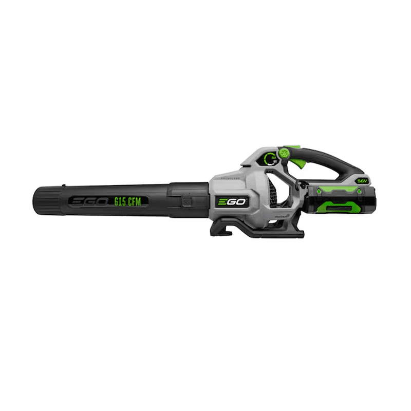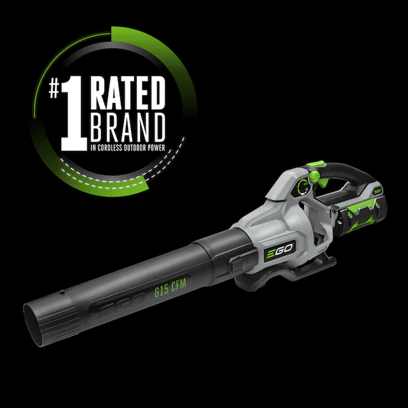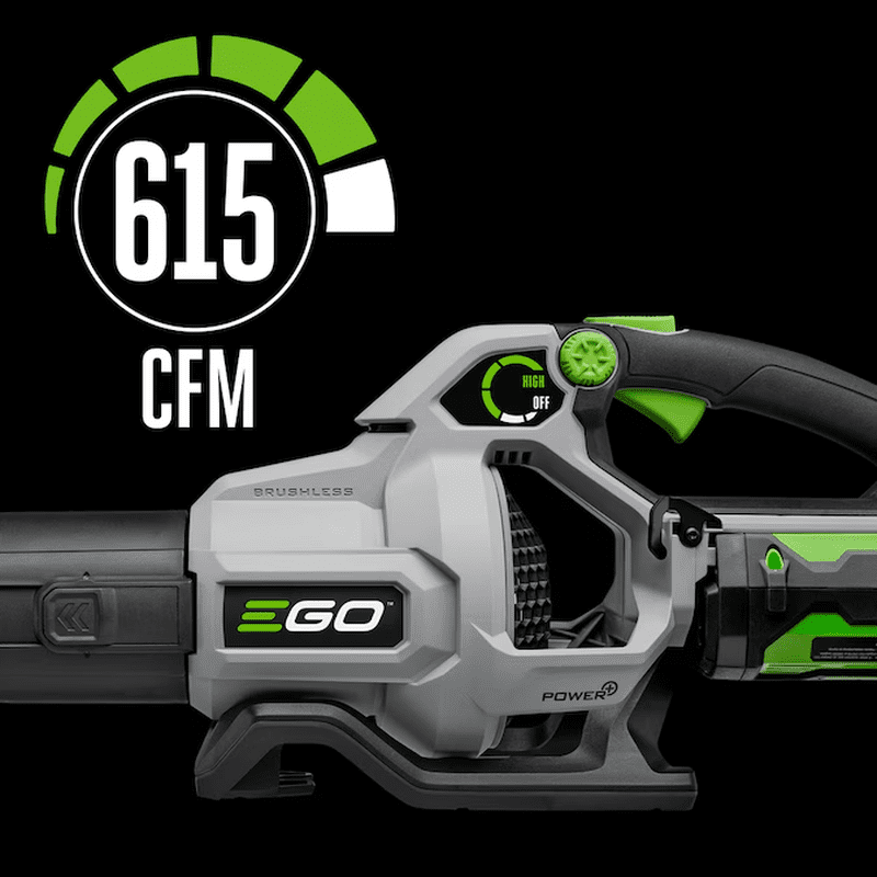 The 615 CFM EGO POWER+ Blower combines unprecedented power and performance! With air speeds up to 170 MPH, this blower can move heavy debris with ease. The lock-on speed-control dial allows you to adjust your speed from 200 CFM to 480 CFM for ultimate control. When you are ready to power through heavy debris, hit the turbo button for 615 CFM! All this industry leading power is combined with industry leading run times; over 75-minutes of continuous run time. The high-efficiency brushless motor delivers longer run time, low vibrations, and an extended motor life. Turbine fan engineering, inspired by advanced aeronautics technology, performs better than premium gas-powered models. The included tapered nozzle makes clearing debris in all conditions easy. This quiet, lightweight and compact blower gets the job done faster and quieter than gas! Experience Power Beyond Beliefâ„¢ without the noise, fuss and fumes. Compatible with all EGO POWER+ ARC Lithium-ion batteries.