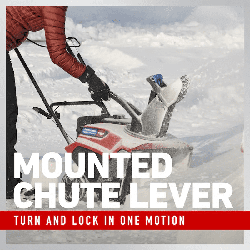 - Aim exactly where you want to throw snow with the mounted chute lever