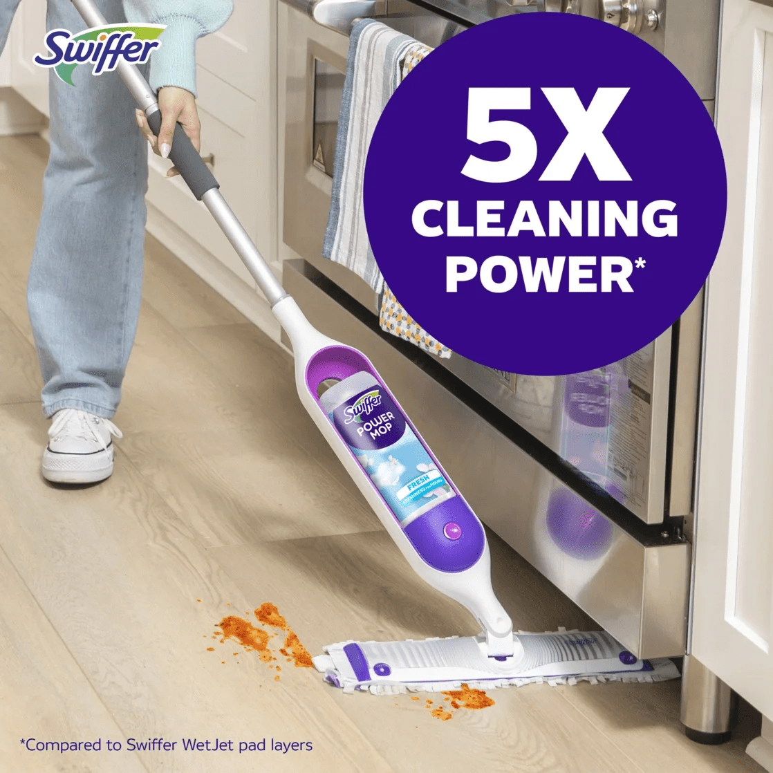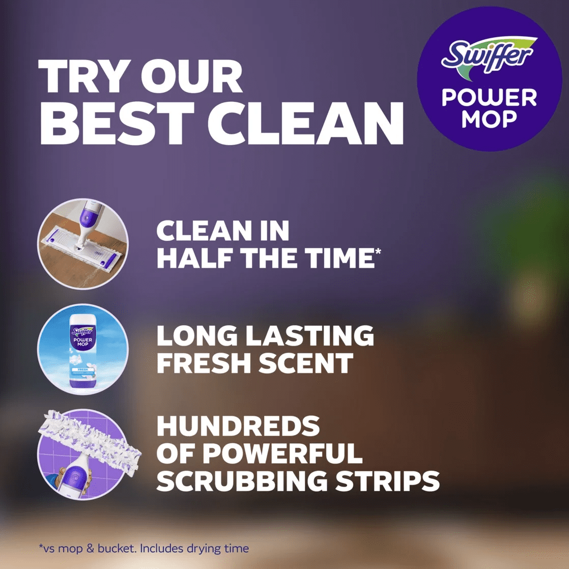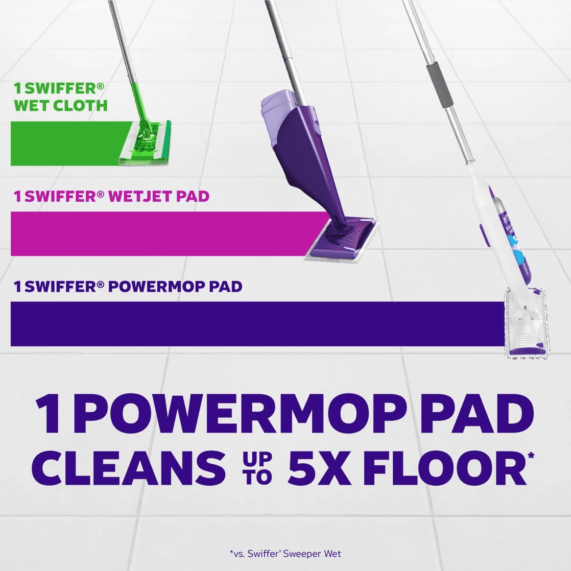 - Mop smarter with Swiffer PowerMop Floor Cleaner and clean in half the time*! *Vs. mop and bucket; includes cleaning and drying time.
