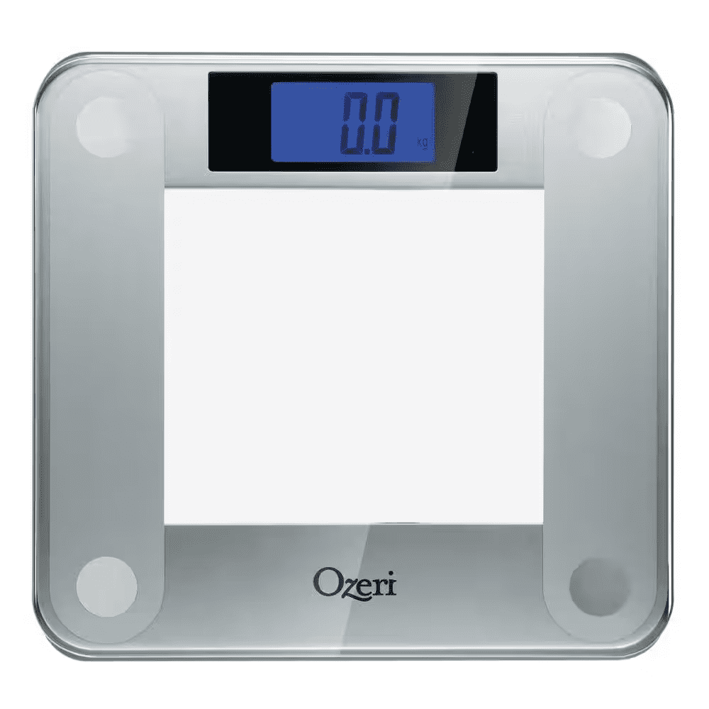 The Ozeri Precision II Digital Bathroom Scale features a widescreen blue backlight LCD screen that utilizes xBright technology to make viewing easy from any angle, regardless of ambient light conditions. This instrument features the latest generation of StepOn technology to display body weights up to 440 lbs. upon stepping onto the platform; no tapping is ever required to turn on or activate the scale. It is auto-calibrated and accurately displays results in increments of 0.2 lb. or 0.1 kg on its ultra-bright screen and uses four latest-generation GX sensors to capture weights with superb accuracy. With its new Dynamix processor, this versatile unit boasts one of the fastest response times in the industry. It also turns off automatically to conserve battery power, and runs on four AAA batteries (included). The Ozeri Precision II Digital Bath Scale combines an oversized platform, impact-resistant tempered glass and durable construction to meet the demands of any user. It is designed with accuracy, convenience and ease of use in mind, whether your goals are weight loss or muscle gain. Your satisfaction is 100% guaranteed.