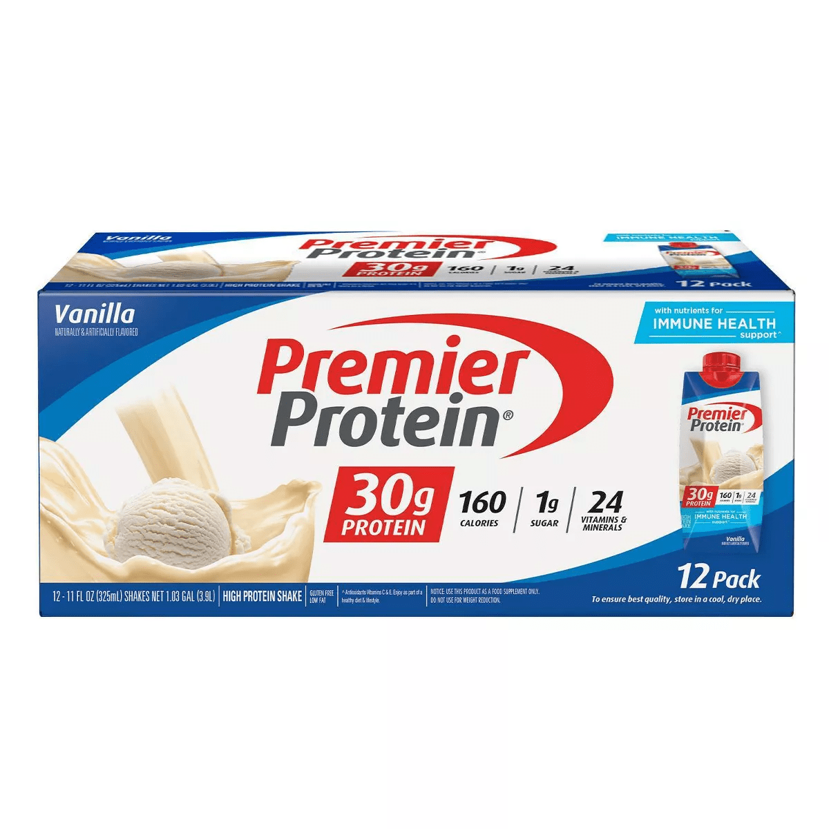 Each Premier Protein Shake contains 30 grams of protein, complete with all of the essential amino acids, 1g sugar, 4g carbs, 160 calories, 24 vitamins & minerals, and is also low in fat. We use proprietary blend of milk protein, casein and whey protein in our shakes to help fuel muscles quickly and for several hours to help support your goals. Enjoy shake as a meal replacement or a healthy snack. They are perfect for the breakfast on-the-go, and afternoon snack, or as a pre -or – post workout fuel. They are delicious as is, but are also highly customizable. Thy blending with your favorite fruits and vegetables or a delicious smoothie or adding to cereal or oatmeal. Available in 6 delicious smooth and creamy flavors: Chocolate, Vanilla, Caramel, Cookies & Cream, Bananas & Cream, Peaches & Cream, Strawberries & Cream.