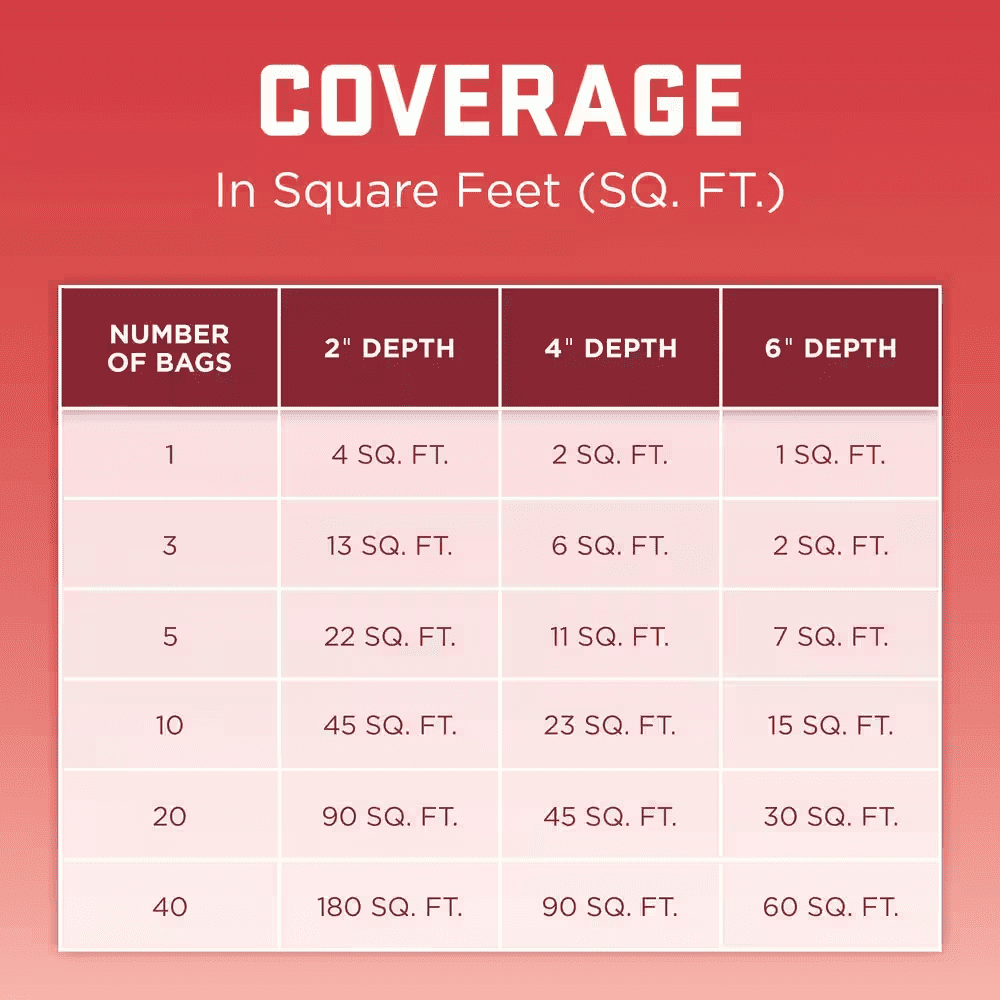 - One 0.75 cu. ft. bag covers 4 sq. ft. (2-inch layer)