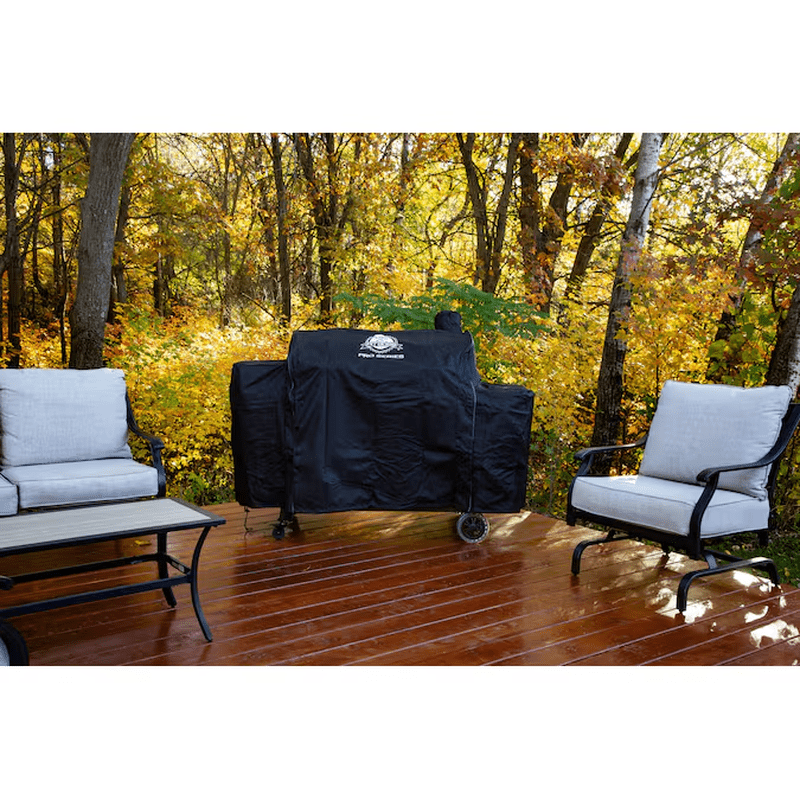 Give your grill the protection it deserves with the Pit Boss pro series grill cover. Designed especially for the PB1100PS1, (fits Lowe’s item 1422174) this cover provides form-fitting, full-length coverage for your pro series wood pellet grill. With 600D polyester and PVC reinforced lining, this cover provides durable, weather resistant protection that will last for years. Additional features include full side opening zipper for easy installation, UV protection, high-end thread to prevent color bleeding and locking drawstrings for quick tightening wind coverage.