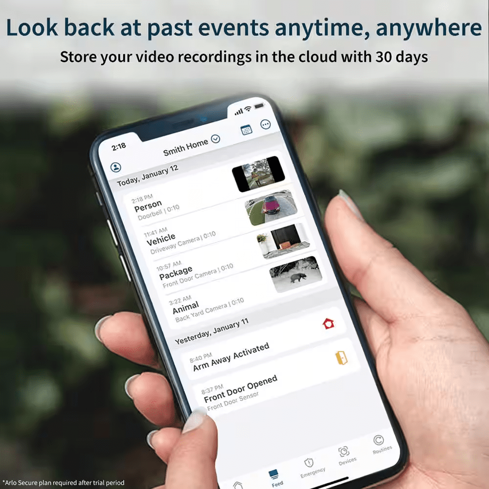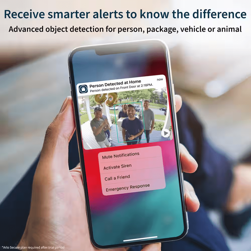 Illuminate and view 2K video with the powerful wire-free Arlo Pro 3 Floodlight Camera. The multi-functional wire-free floodlight camera cuts through darkness with brilliant LEDs, and an integrated high resolution 2K camera allows you to clearly view live video or recorded clips directly from your phone, with an included trial of Arlo Secure. The sleek design seamlessly integrates a robust security solution into your space. See more with a wide 160-degree field of view. Hear and speak to visitors clearly, with two-way audio. Customize lighting configurations to enhance security. Trigger your built-in siren remotely or automatically to ward off unwanted visitors. Protect your home or business with Arlo. Arlo Secure includes cloud recordings of video clips at 2K or lower resolution for 60 days. Renewal of an Arlo Secure plan is required to maintain Arlo Secure features, including cloud storage.