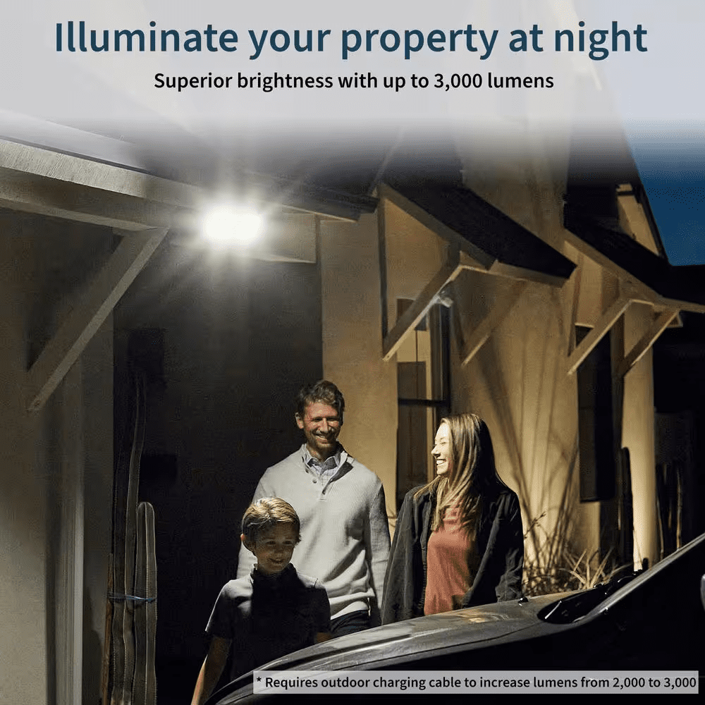 Illuminate and view 2K video with the powerful wire-free Arlo Pro 3 Floodlight Camera. The multi-functional wire-free floodlight camera cuts through darkness with brilliant LEDs, and an integrated high resolution 2K camera allows you to clearly view live video or recorded clips directly from your phone, with an included trial of Arlo Secure. The sleek design seamlessly integrates a robust security solution into your space. See more with a wide 160-degree field of view. Hear and speak to visitors clearly, with two-way audio. Customize lighting configurations to enhance security. Trigger your built-in siren remotely or automatically to ward off unwanted visitors. Protect your home or business with Arlo. Arlo Secure includes cloud recordings of video clips at 2K or lower resolution for 30 days. Renewal of an Arlo Secure plan is required to maintain Arlo Secure features, including cloud storage.