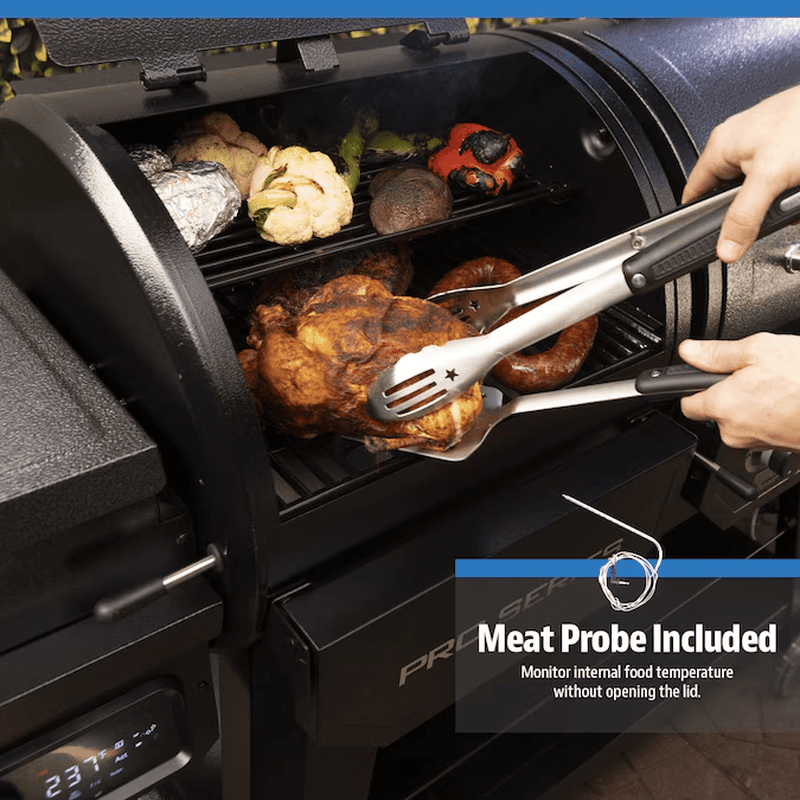 - Two meat probe ports allow you to monitor and hone in on optimal temperature – one meat probe is included with your grill purchase