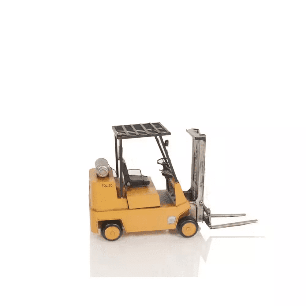Eyecatching and super realistic, the Propane Forklift Sculpture is a unique handmade replica of the most influential vehicles that expanded the idea of the forklift. It was developed by companies like Toyota and Caterpillar after WWII. It features many details a propane tank, gearsticks, forks, lights, and a fire extinguisher. It is 100% made from metal with an authentic yellow paint finish and it is a sought-after model for collectors and enthusiasts. 10” x 16.5” x 5.5″