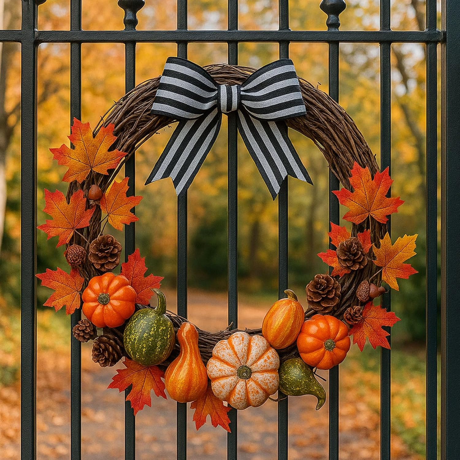 - Realistic & Colorful Design – Designed with vibrant colors and natural details, the mini pumpkins and leaves look realistic and eye-catching, adding a festive autumn harvest atmosphere to your home decor, table settings, or Halloween party.