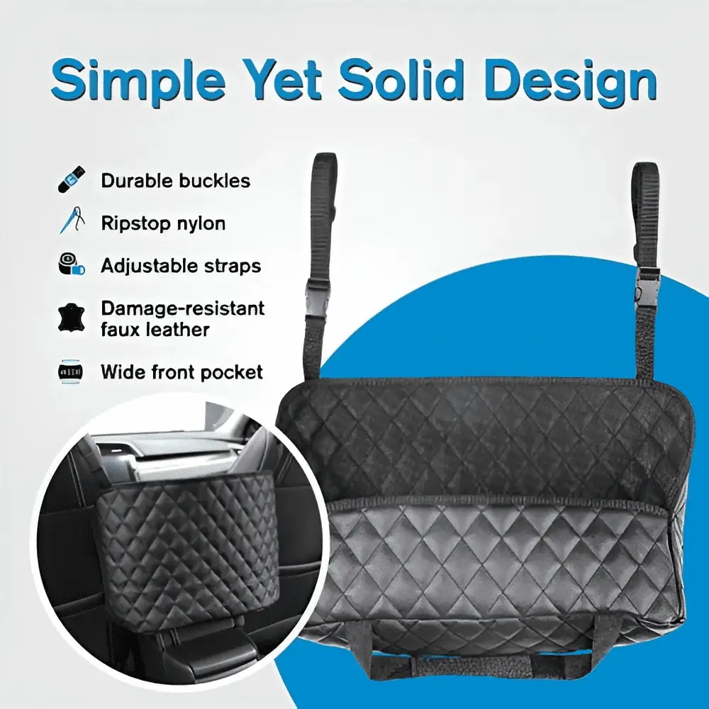 Energetic people and pets in the backseat of your car, road obstacles, bulky bags, and spills can really get in the way of your driving experience. But don’t fret, we’ve got the perfect solution for you When it’s time to travel or make a quick trip to the grocery, simply place your purses, bags, documents, and accessories into this car handbag holder This adjustable and durable leather large capacity bag fits easily between the front seats of any car, making it the best tool for easy access to your small items. The car net pocket also protects drivers from disturbances to ensure a safe and accident-free road trip. Note: This purse holder for cars is not compatible with cars that do not have center consoles and sports center consoles. It cannot also be used with side-opening center consoles, double-opening center consoles, and slide-opening center consoles.