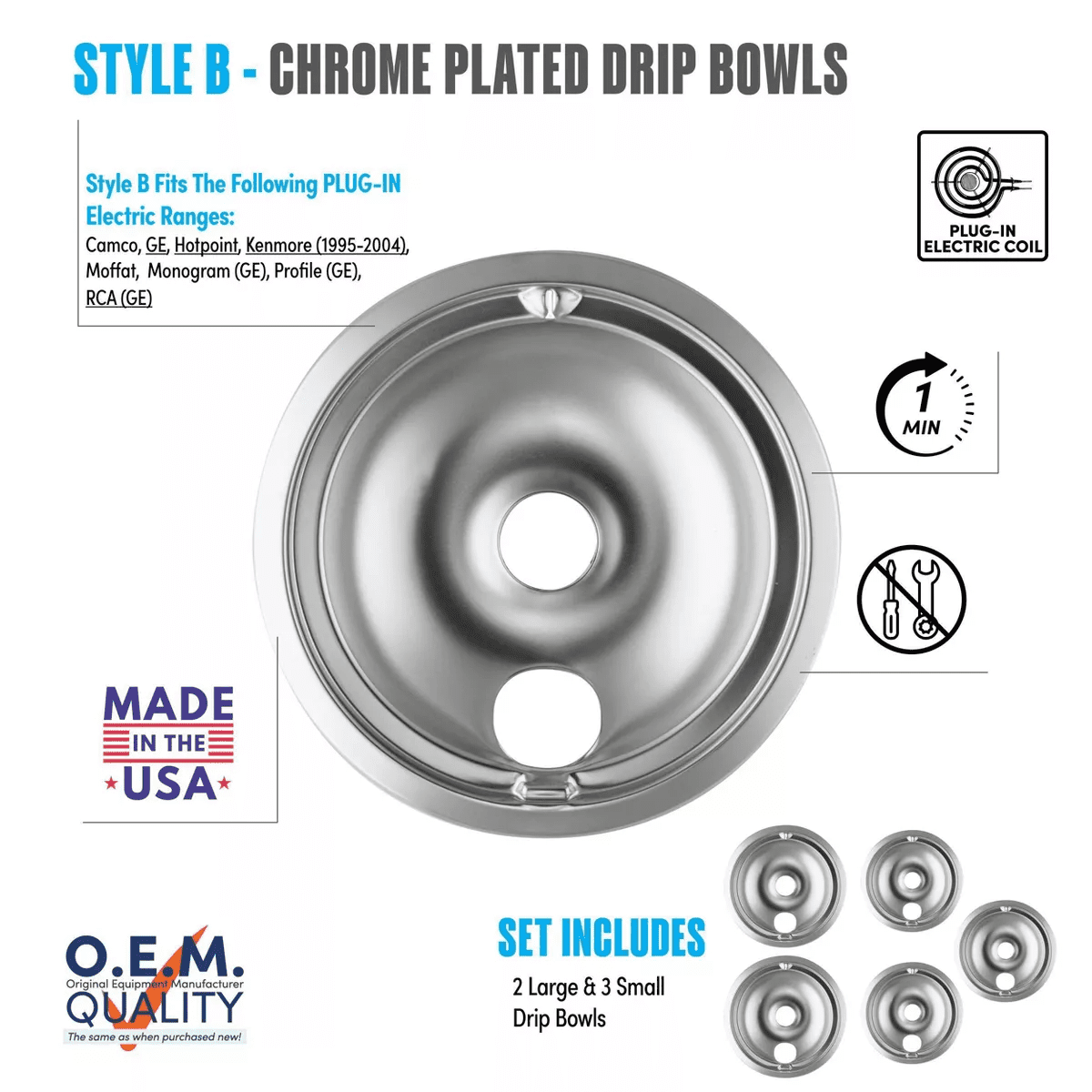 - Save money and energy! Replacing chrome drip bowls and pans annually can save the consumer up to $30 per year in energy costs