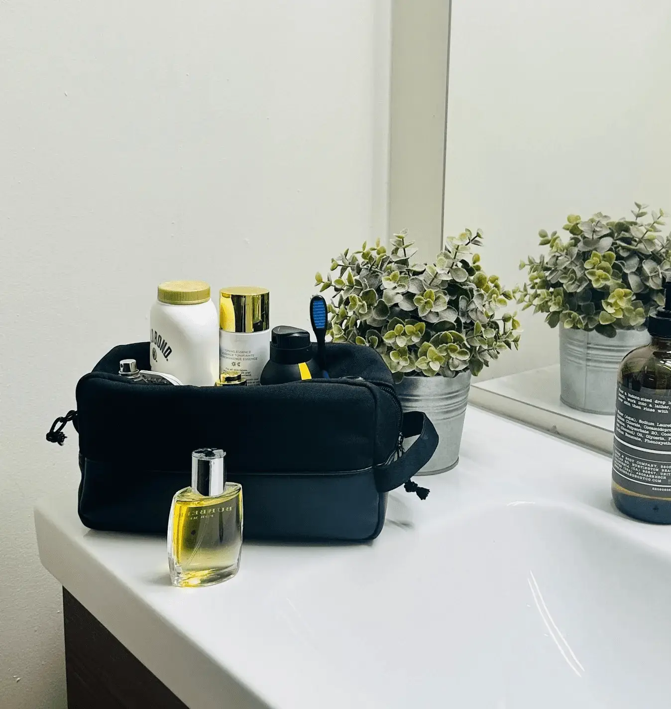 Red Stone Toiletry Bag for Men, Travel Toiletry Organizer Dopp Kit, Water-resistant Shaving Bag for Toiletries Accessories, Dorm Room Essentials, Black