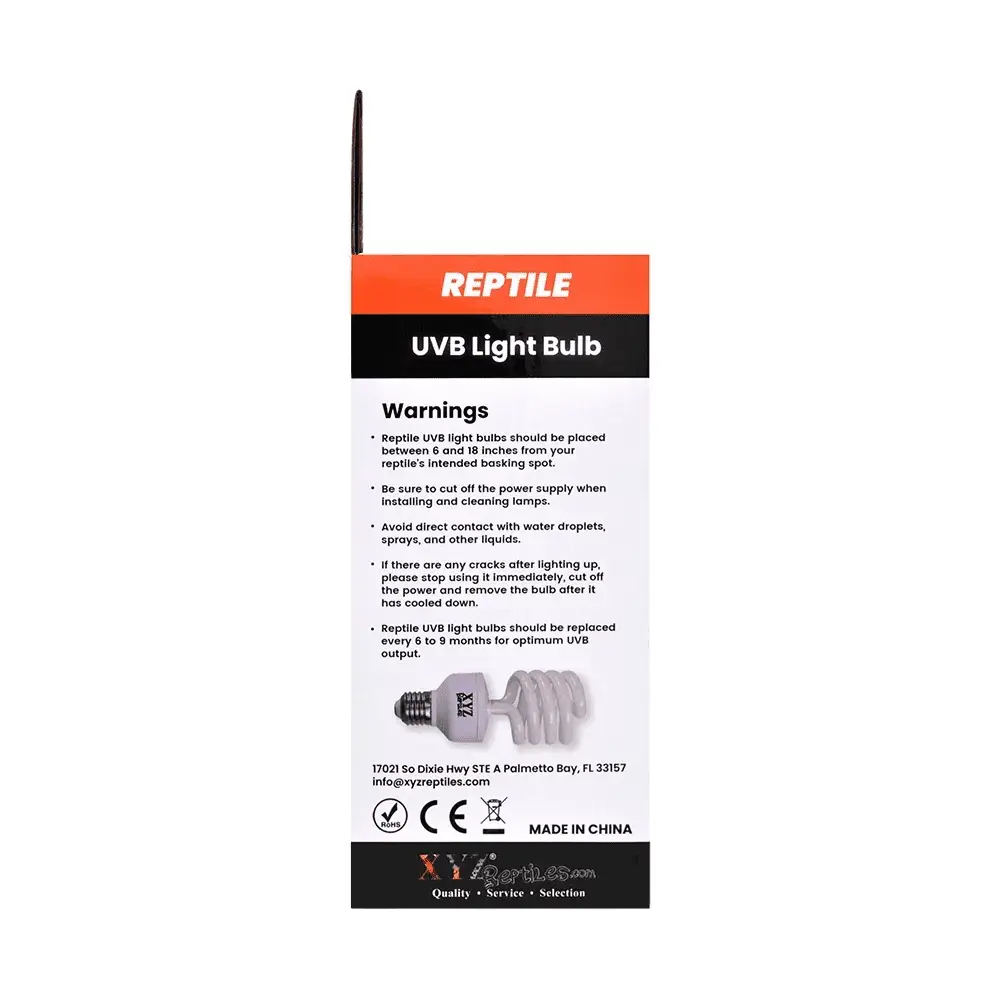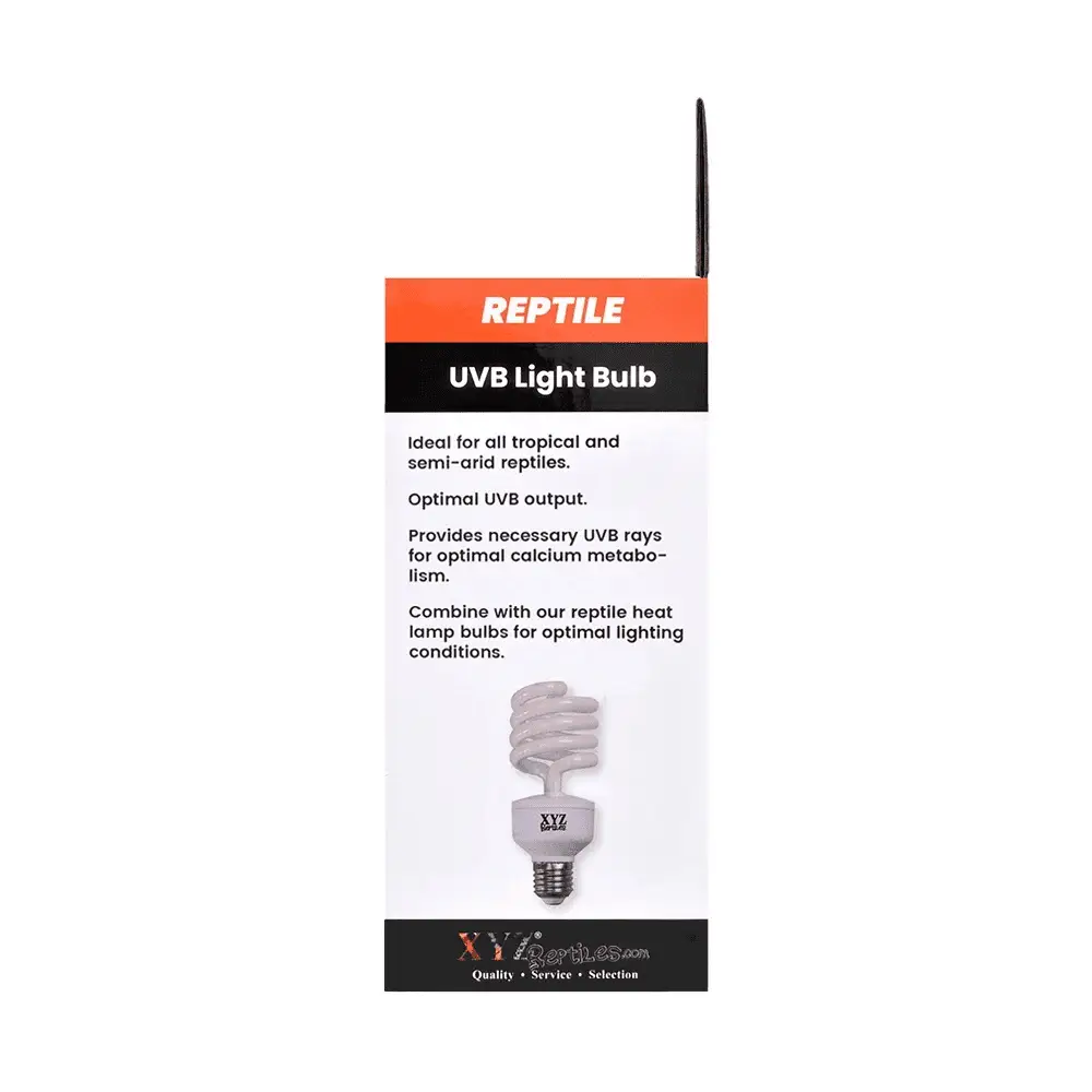 Our reptile UVB light bulb 5.0 is a fantastic source of low intensity lighting for your reptile pets. 5.0 UVB lights are perfect for water dragon lighting and chameleon lighting. The XYZReptiles UVB light bulb 5.0 is manufactured under strict and rigorous guidelines to ensure proper lighting for your reptile pet. This low intensity reptile uvb light is made specifically for low lighting reptile pets. Use this bulb along with a basking light for a perfect forest floor enclosure. It is perfect for such as the elongated tortoise and the redfoot tortoise. This bulb is also great for panther chameleons and other pet lizards like the caiman lizard. Finally, this light is an ideal choice for illuminating blue tongue skink setups. If you are looking for forest floor reptile lights then look no further. Because reptile lighting is an important part of the perfect reptile setup you need a quality reptile UVB light for your pet. Along with proper bedding, heating and feeding, proper lighting keeps your reptile pet healthy and happy. You may want to view our other and . Pro Tip: All UVB bulbs lose their intensity over time and need to be replaced. Write the start date on the UVB bulb itself and change it every six to eight months.