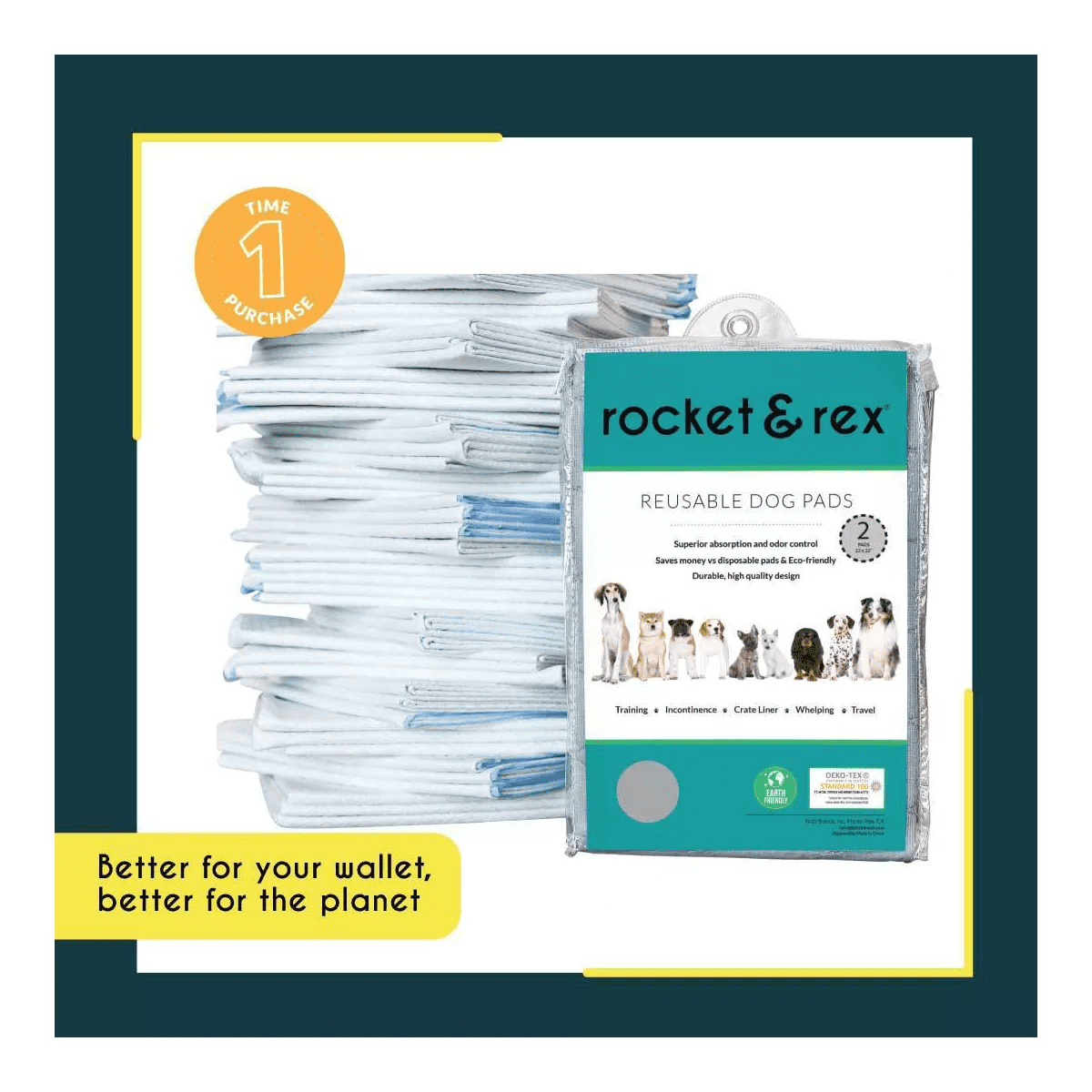 rocket & rex washable and reusable dog pads are 100% waterproof and leak-proof. They feature 4 super absorbent layers and a waterproof backing that will protect your floors and surfaces. By reducing waste they are the environmentally friendly and sustainable choice, and they also save you money vs disposable potty pads.