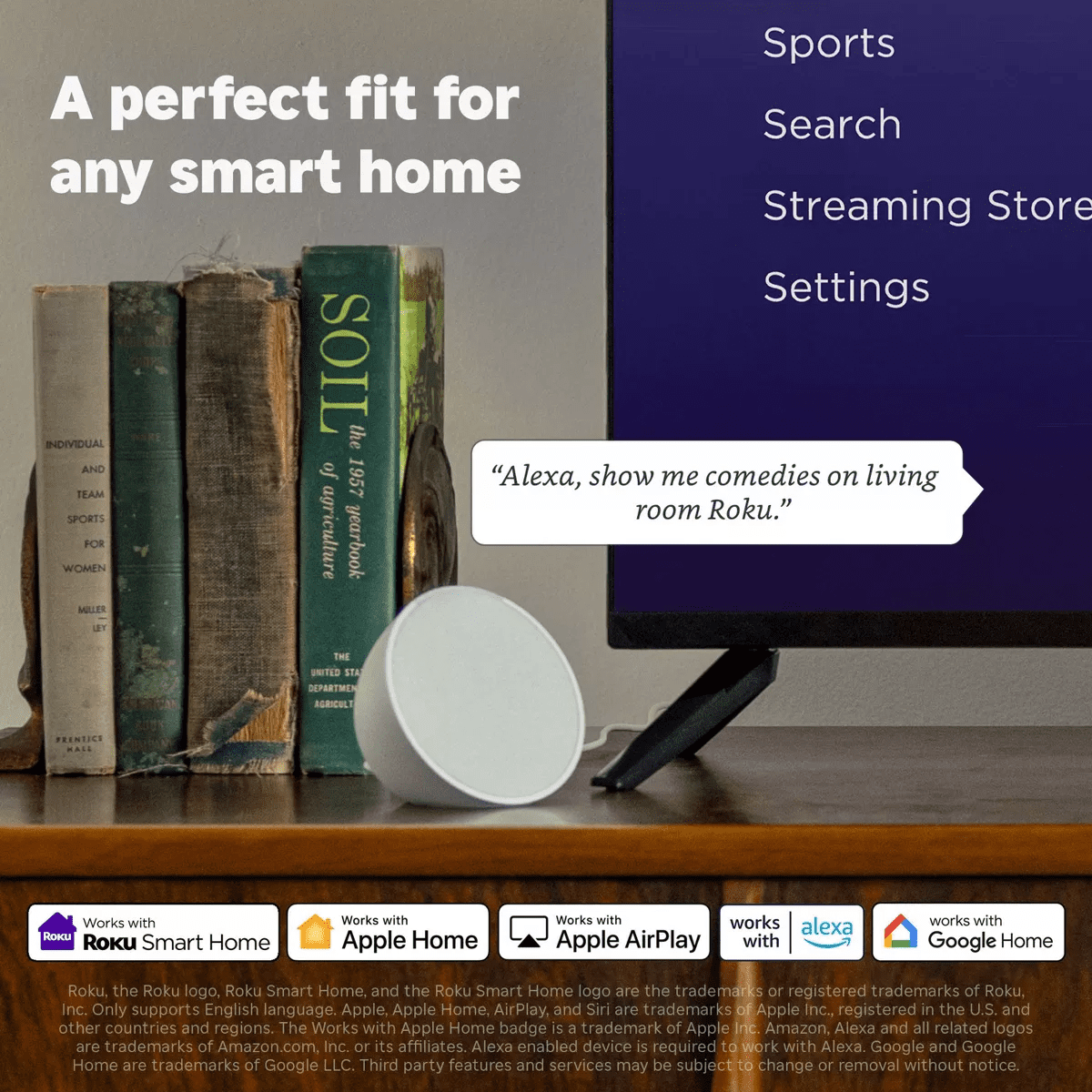 - A perfect fit for any smart home: Enjoy easy voice control with Roku Voice, Siri, Alexa, or Google Assistant. Effortlessly share videos, photos, music, and more from your Apple devices to your smart TV with Apple AirPlay.