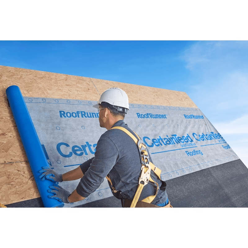 RoofRunnerâ„¢ is a lightweight, synthetic polymer-based underlayment that outperforms felt and outclasses other synthetics. Designed for use on roof decks as a water-resistant layer beneath asphalt roofing shingles, this scrim-reinforced underlayment includes a special top surface treatment that provides excellent slip resistance, even when wet.