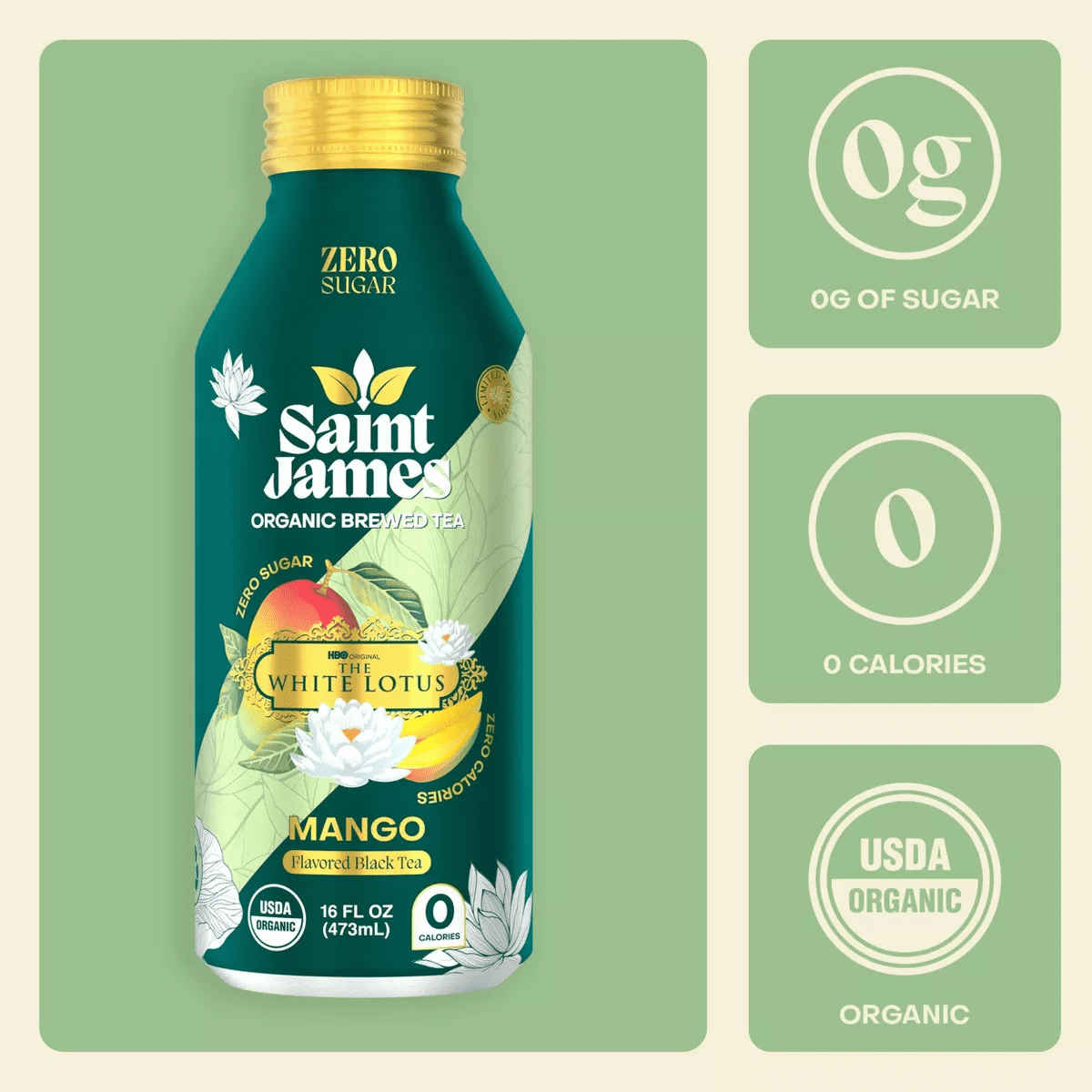Slip into something tropical with The White Lotus Limited Edition Mango Black Tea by Saint James. Created in partnership with Warner Bros. Discovery Global Consumer Products, the tea is overflowing with juicy mango and the rich flavors of black tea with the perfect hint of sweetness. Enjoy each sip as they transport you straight to the luxurious White Lotus Resort.