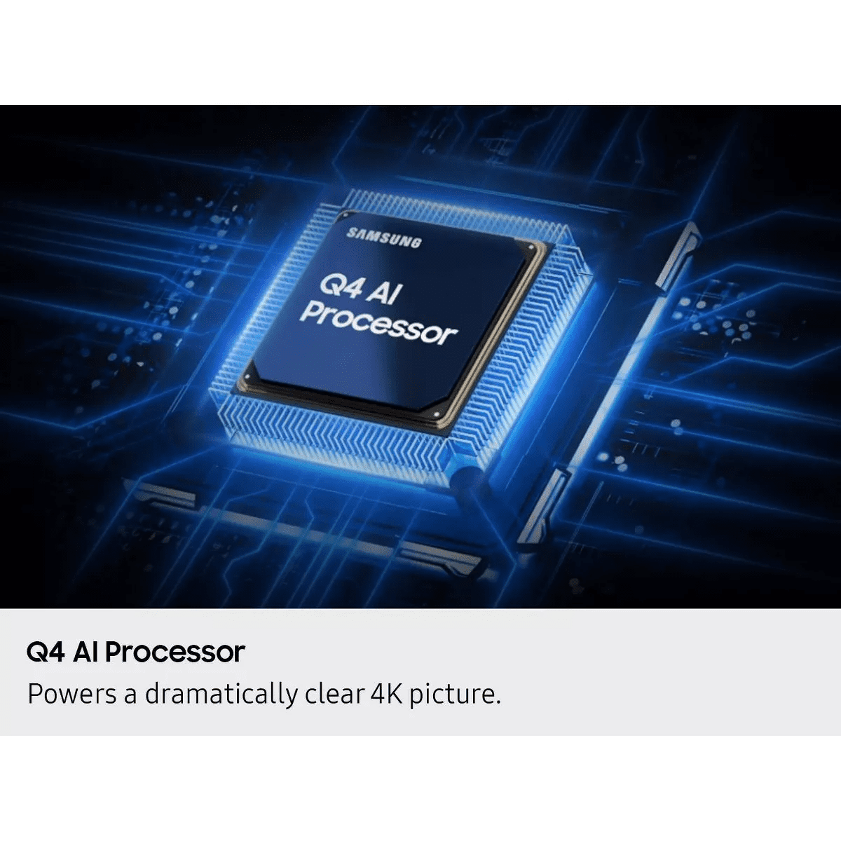 - Q4 AI Processor -Powers dramatically clear color and sound: Enjoy your content in stunning 4K quality, even if the original source is of lower resolution. Plus, get the most out of what you are watching with AI-optimized color boosted picture and audio quality, enhanced accordingly to the type of content. Whether you’re cheering for your favorite team or watching a classic from your film collection, take your entertainment to the next level. *Utilizes AI based formulas to adjust color and sound .
