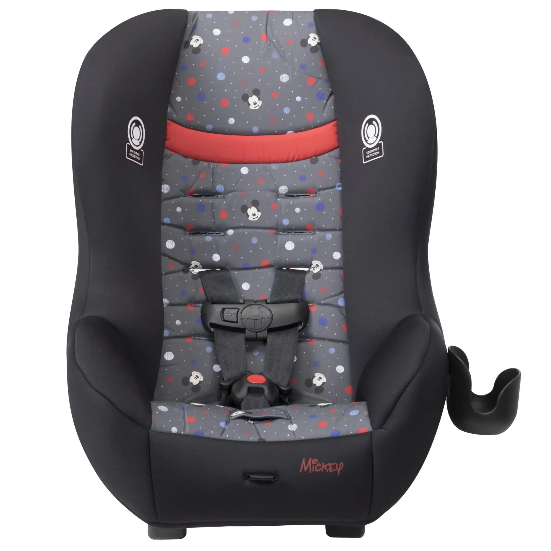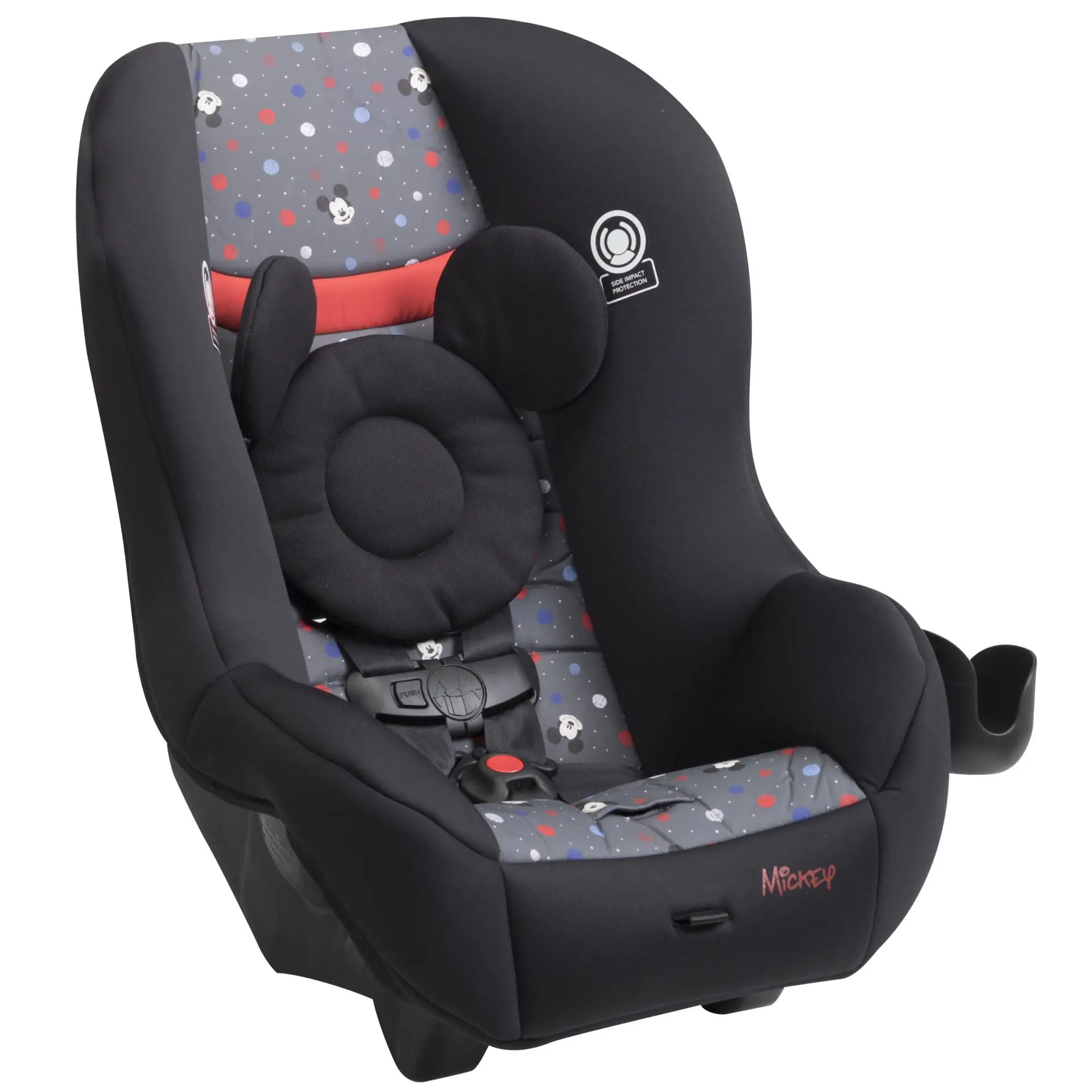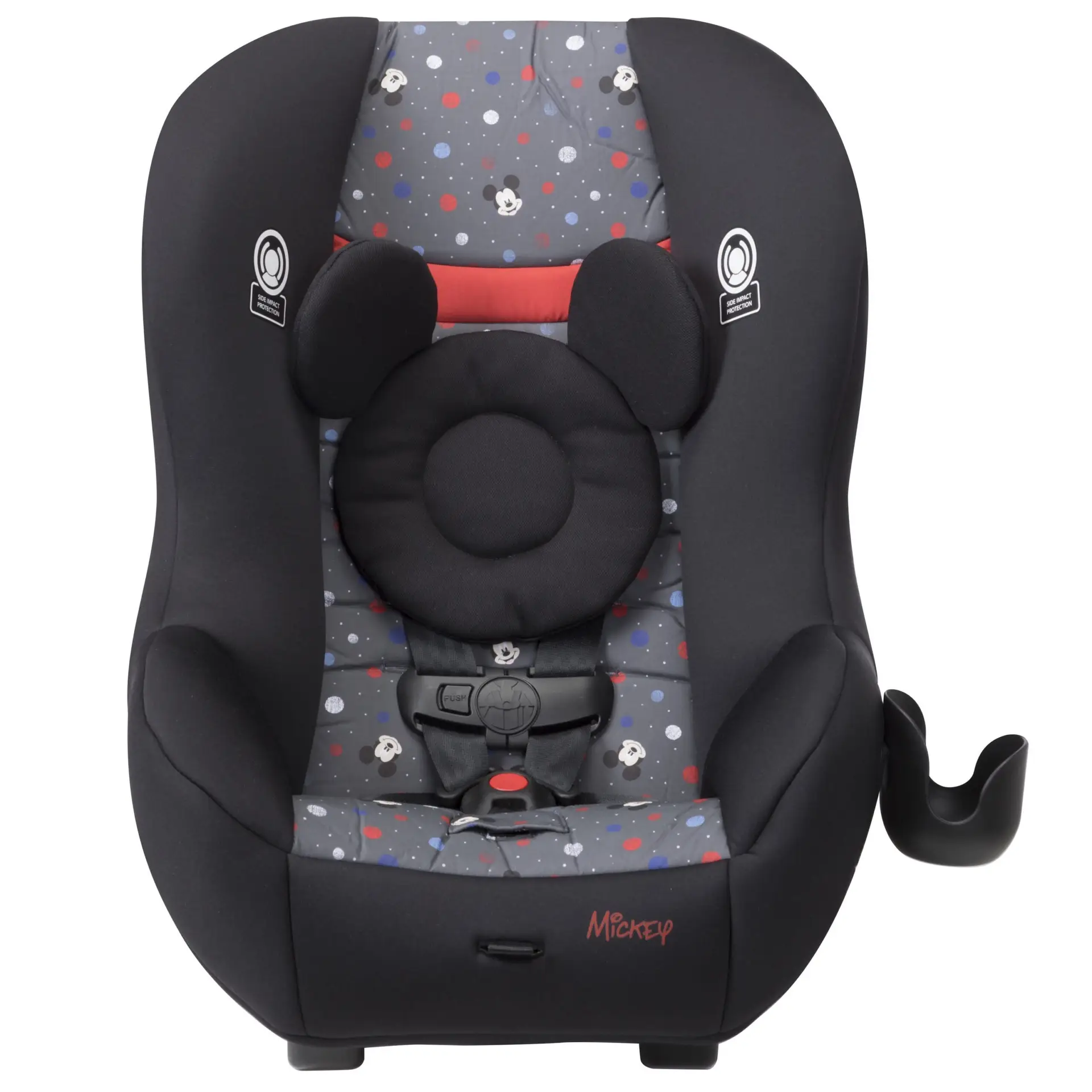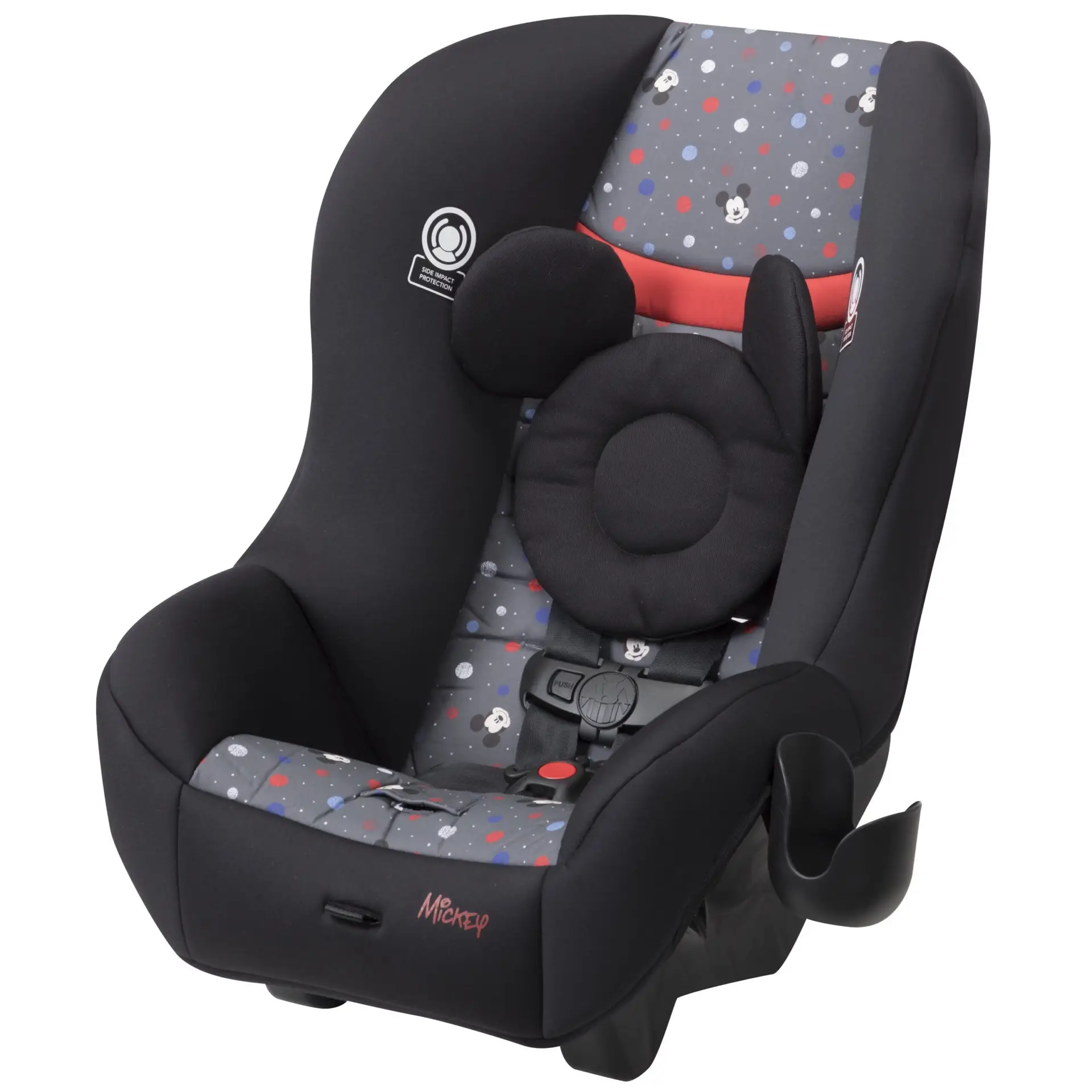 The Disney Baby Scenera NEXT Luxe keeps your growing family comfortable in the car. The seat is designed to fit 3 across in the back seat, keeping three kids safe during the ride with side impact protection and a 5-point harness that adjusts easily from the front of the seat. The harness features 5 heights and 3 buckle locations so you can be sure you’re giving the best fit to your growing child. The seat features an adorable mouse-eared insert to keeps baby’s head extra snug during the ride. The car seat can be used in the rear-facing position from 5-40 pounds or forward-facing from 22-40 pounds (Actual fit may vary. Not all children will comfortably fit in the seat for the full weight and height ranges listed). The seat pad removes from the seat and is both machine washable and dryer safe, meaning a thorough clean is just a machine cycle away. The Scenera NEXT Luxe is great for airplanes too. It’s fully approved for air travel and gives your child a familiar seat during the flight. It’s lightweight, and won’t weigh you down as you carry it through the airport. Taking the seat with you also means you’ll have it on hand for use in the rental car during your trip.