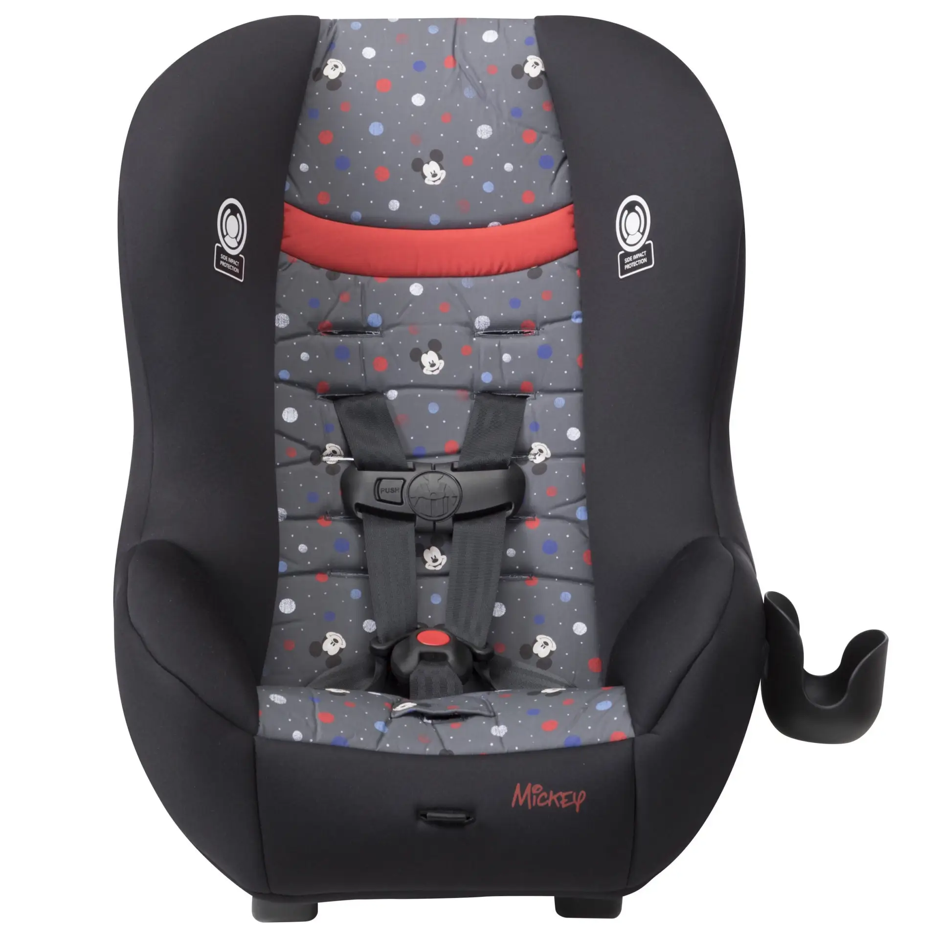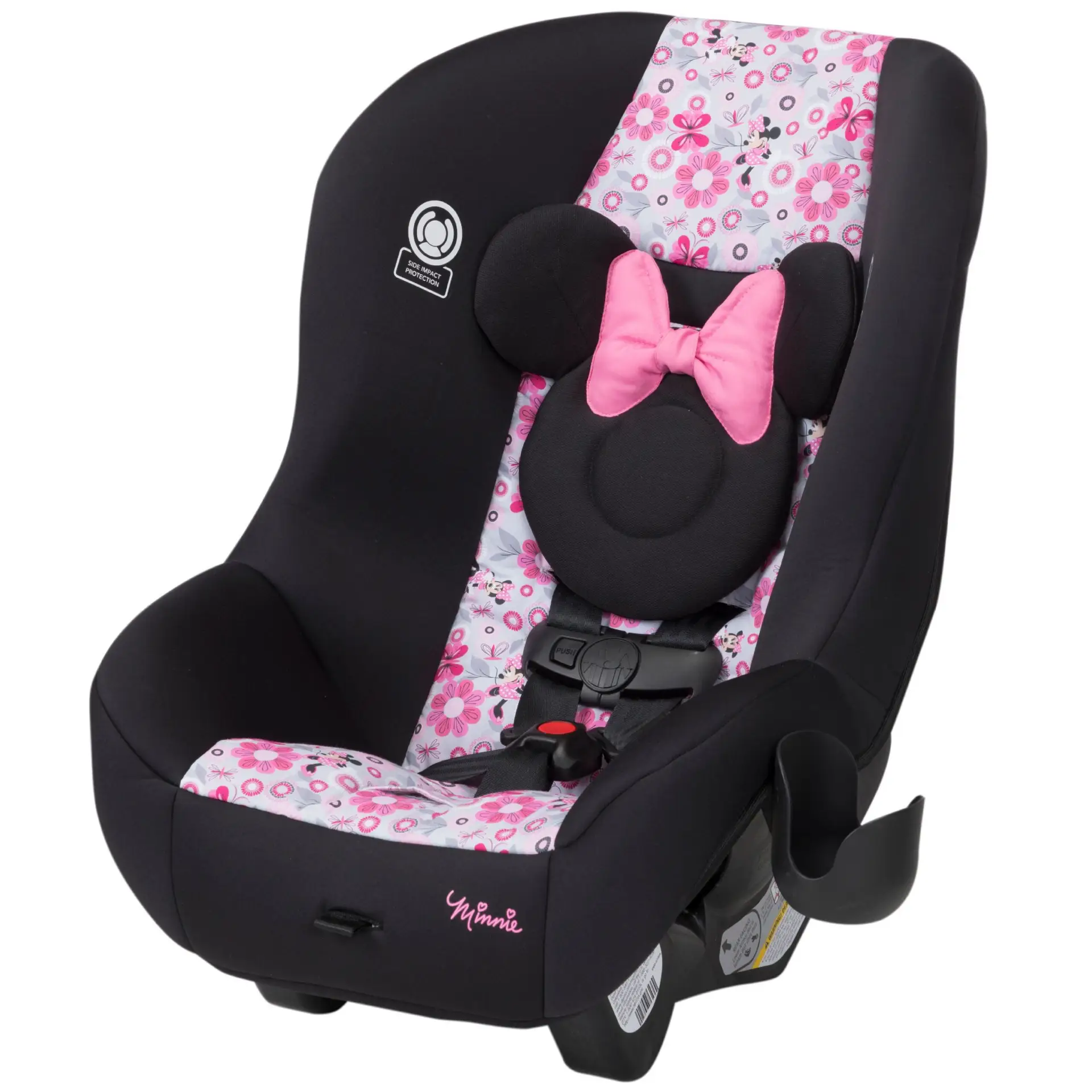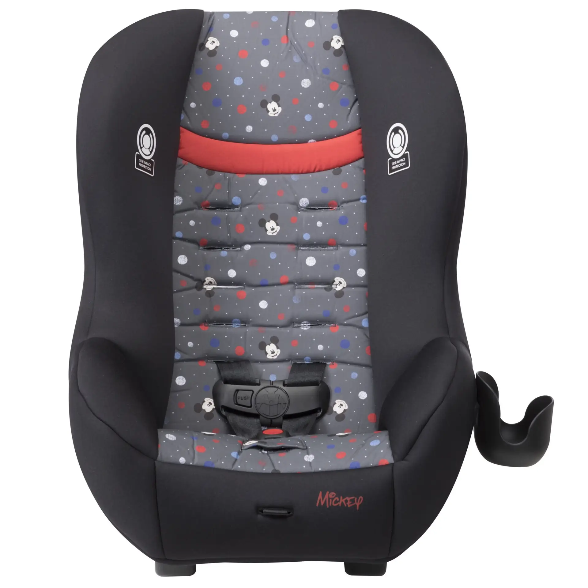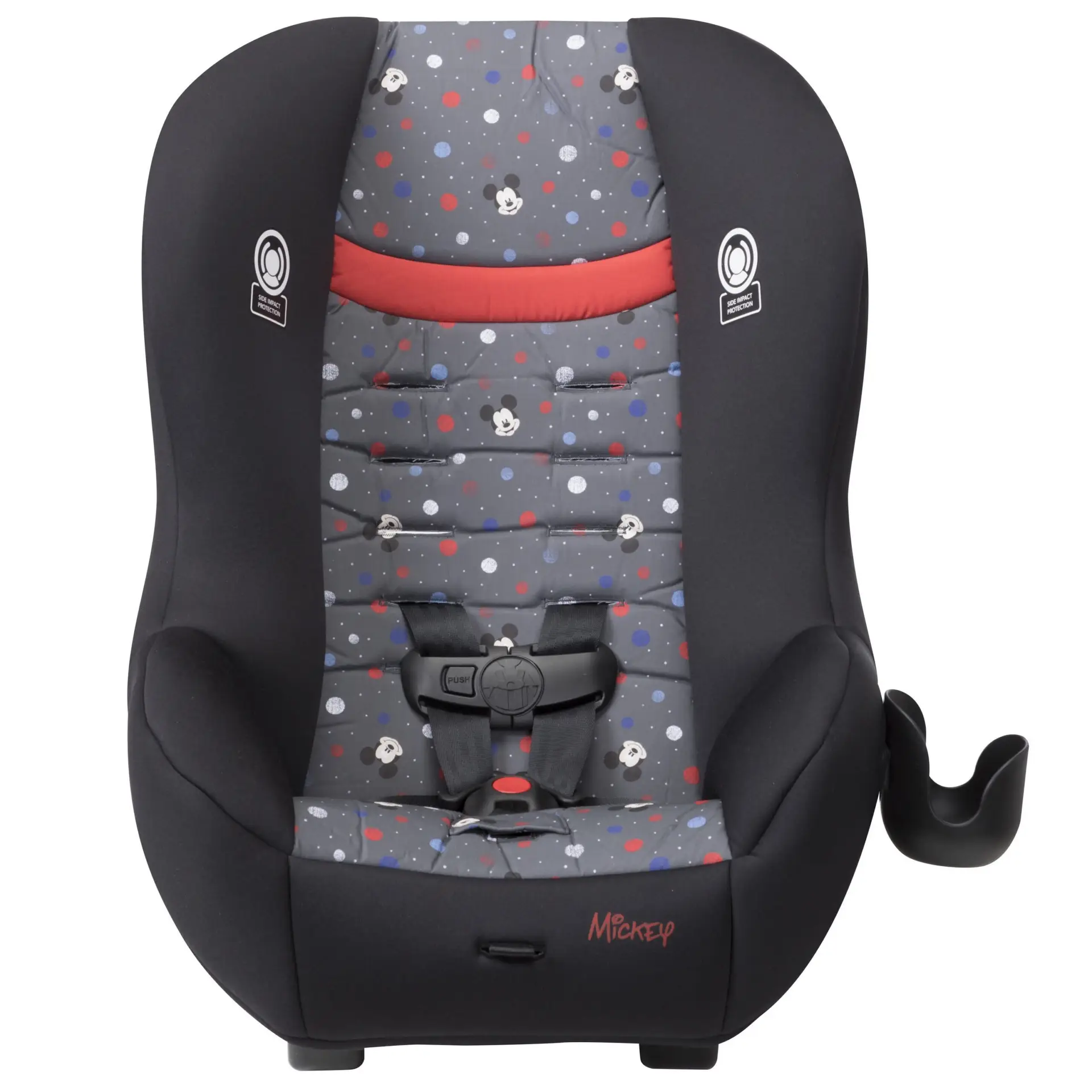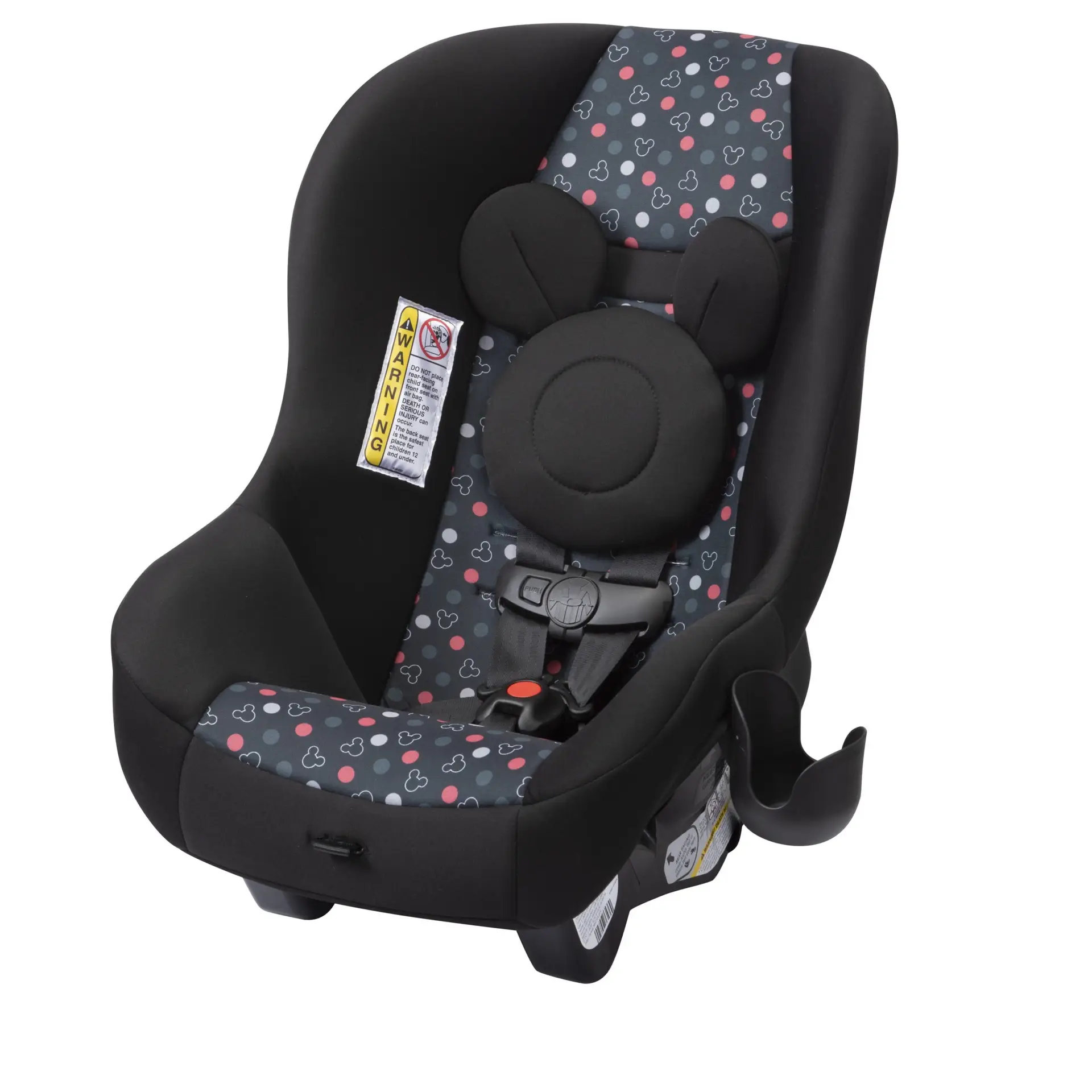 The Disney Baby Scenera NEXT Luxe keeps your growing family comfortable in the car. The seat is designed to fit 3 across in the back seat, keeping three kids safe during the ride with side impact protection and a 5-point harness that adjusts easily from the front of the seat. The harness features 5 heights and 3 buckle locations so you can be sure you’re giving the best fit to your growing child. The seat features an adorable mouse-eared insert to keeps baby’s head extra snug during the ride. The car seat can be used in the rear-facing position from 5-40 pounds or forward-facing from 22-40 pounds (Actual fit may vary. Not all children will comfortably fit in the seat for the full weight and height ranges listed). The seat pad removes from the seat and is both machine washable and dryer safe, meaning a thorough clean is just a machine cycle away. The Scenera NEXT Luxe is great for airplanes too. It’s fully approved for air travel and gives your child a familiar seat during the flight. It’s lightweight, and won’t weigh you down as you carry it through the airport. Taking the seat with you also means you’ll have it on hand for use in the rental car during your trip.