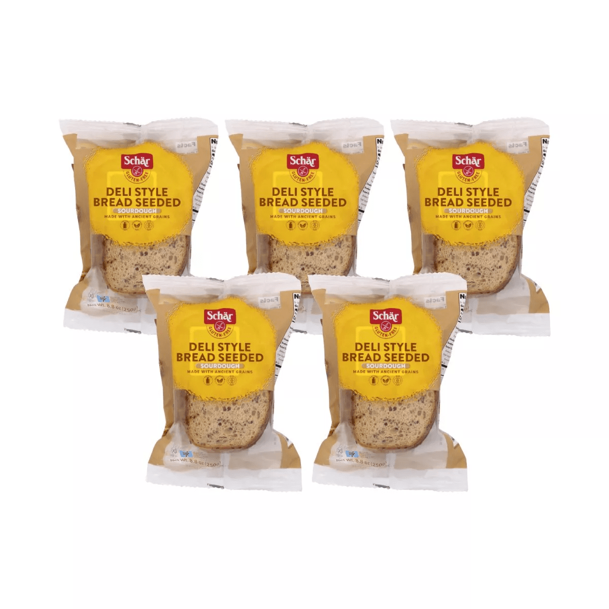 Indulge in the delicious taste and texture of Schar Deli Style Bread Seeded Sourdough. This case includes 5 packs of 8.8 oz each, perfect for stocking up your pantry or sharing with friends and family. The bread is made with high-quality ingredients and features a delightful seeded sourdough flavor that pairs well with a variety of toppings. Whether you toast it for breakfast, make a sandwich for lunch, or serve it alongside dinner, this bread is sure to be a hit at any meal. Enjoy the convenience of having multiple packs on hand for whenever a craving strikes.