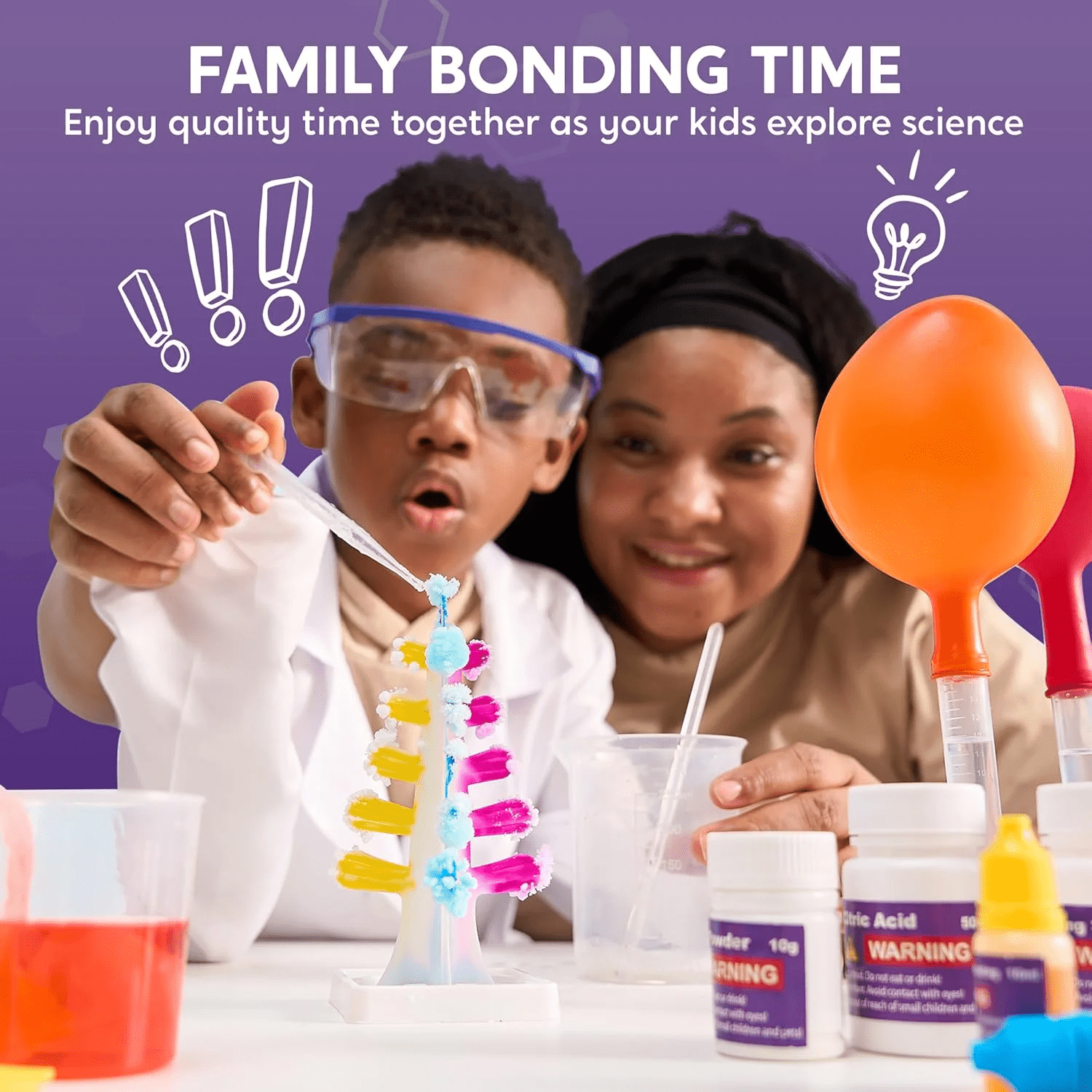 Joyfy science kits offer children an engaging experience through over 50 interactive experiments, such as crafting a crystal tree, a lava lamp, and a glowing potion. These activities encompass various subjects, including chemistry, DIY projects, and color explorations, allowing kids to not only grasp scientific concepts but also develop a greater appreciation for the world around them. Great birthday and Christmas gift for boys and girls ages 8 9 10+.