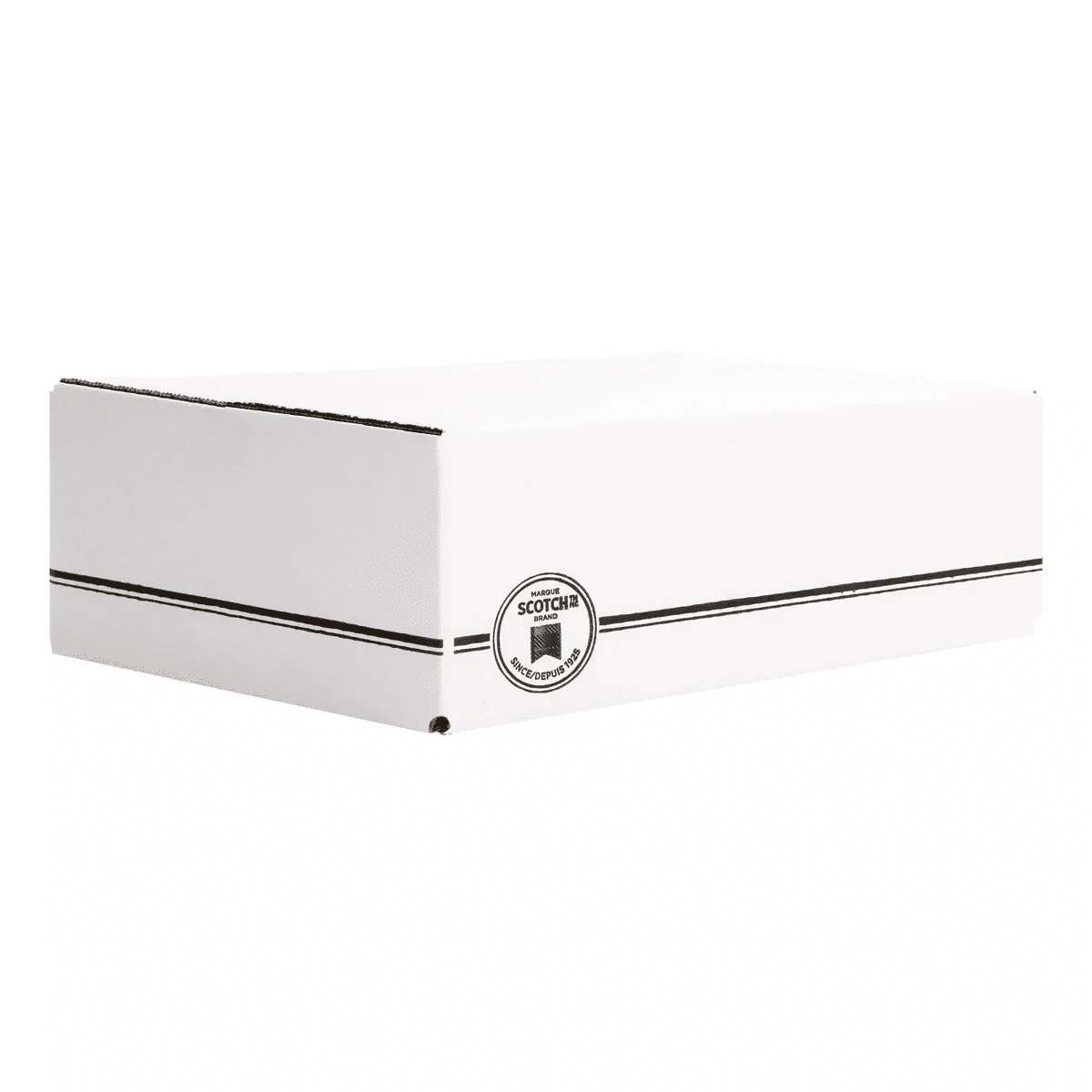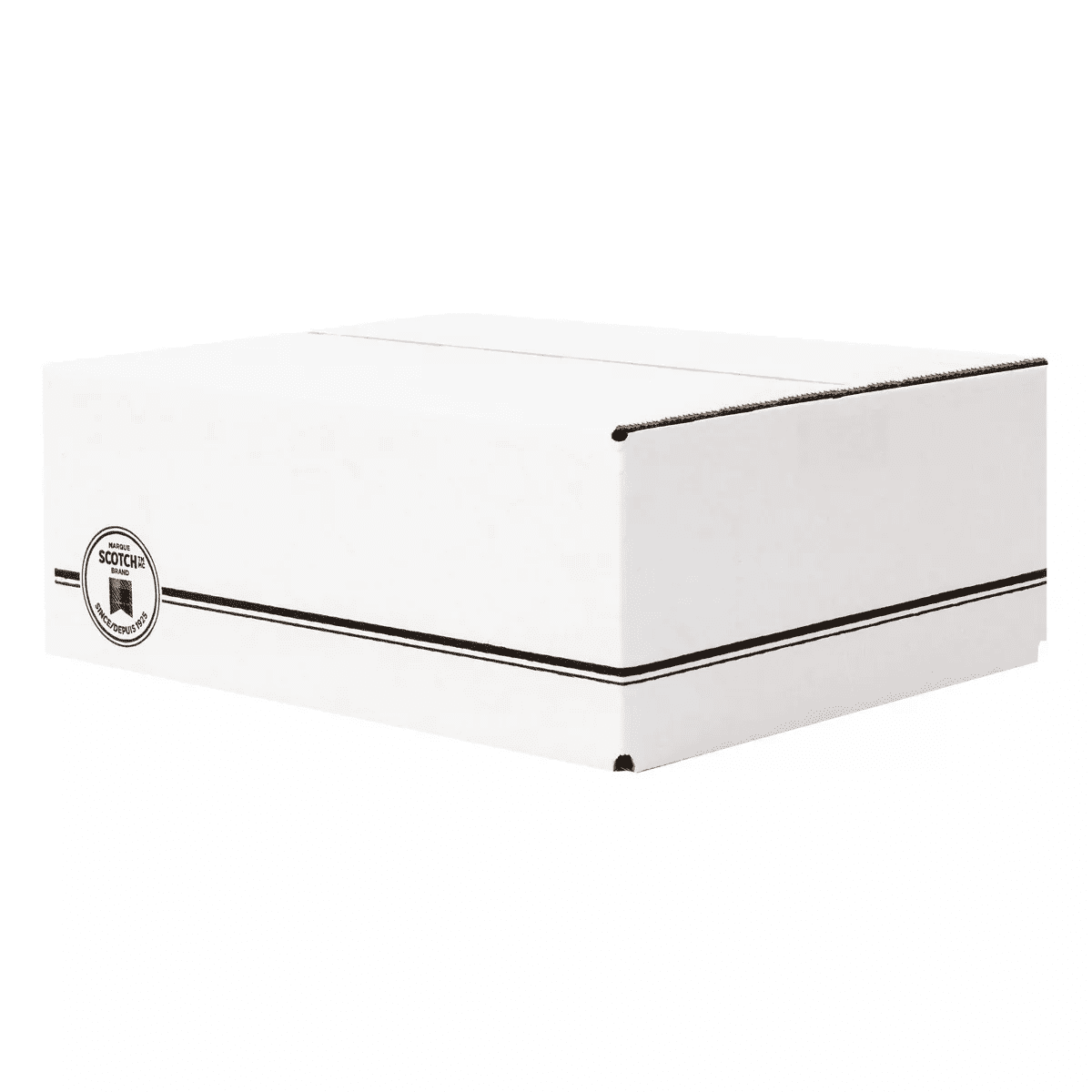 Ready to ship. Ready to move. Made to store. Our range of packaging supplies and tapes are designed to solve any packing problem. Scotch Mailing Boxes are ideal for mailing, moving, shipping and storing. Strength you can rely on and the box is easy to assemble. Ready to address with printed sender and receiver address labels and ‘Handle with Care’ printed in bold red print. White mailing box has excellent stacking strength while maintaining a lightweight design. Box is recyclable.