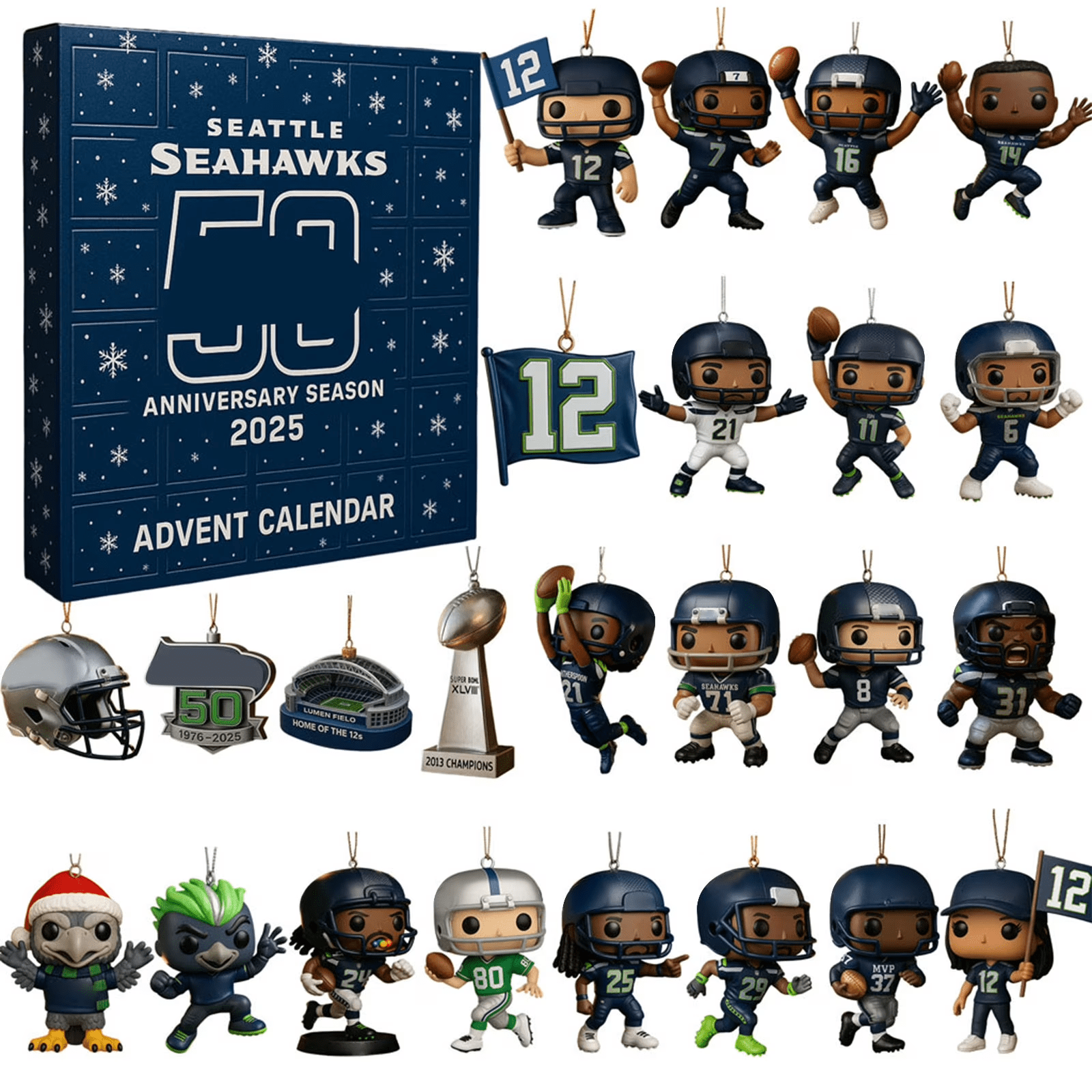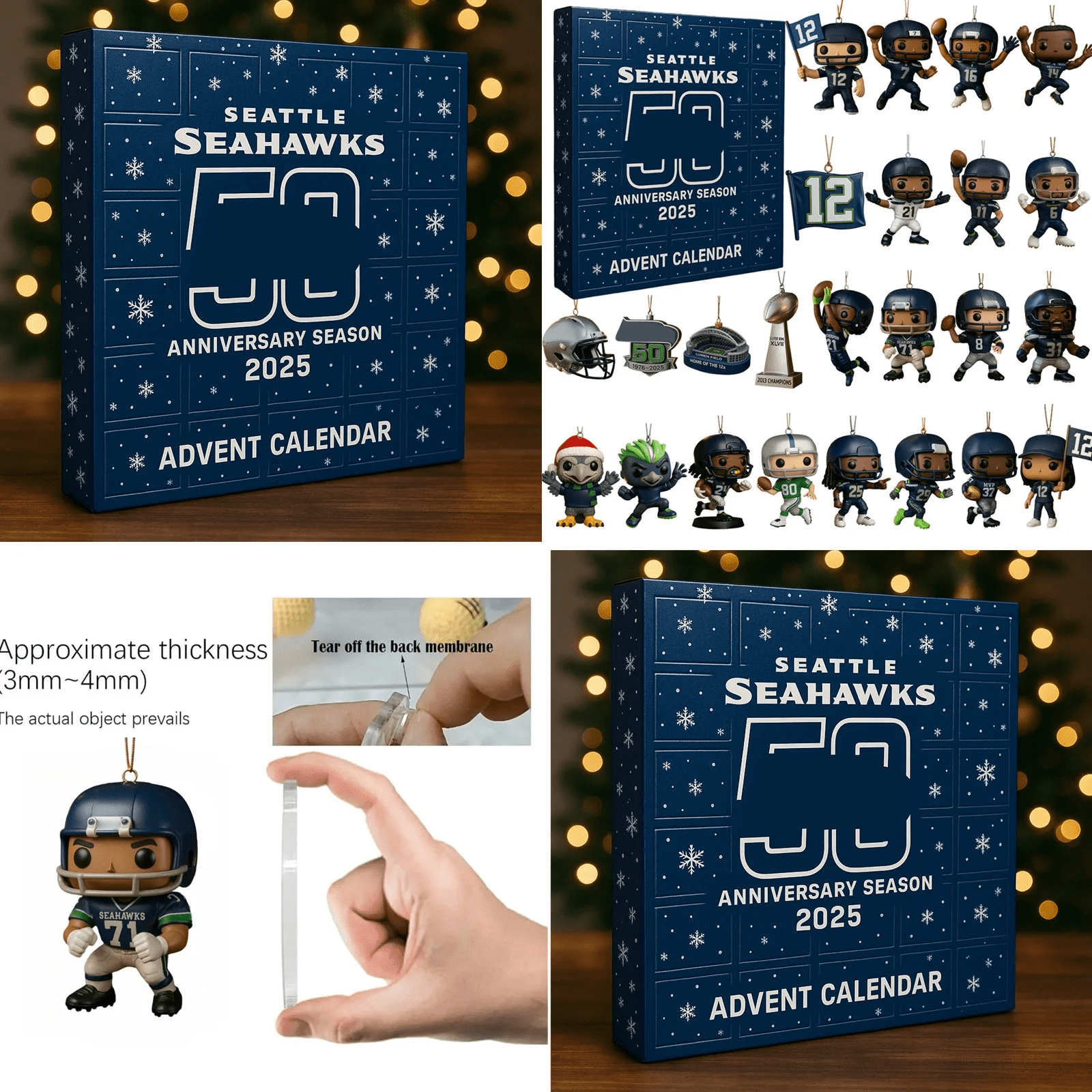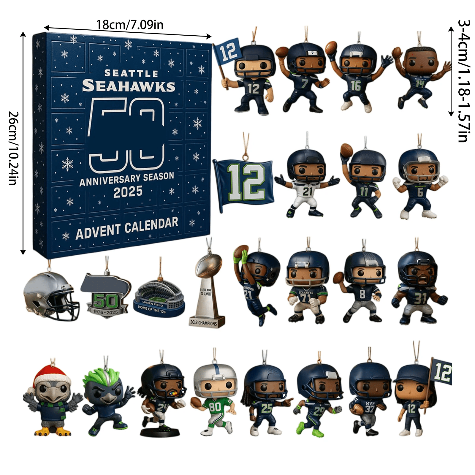 Seahawks Christmas Countdown Calendar – 24 Day Football Team Advent with Player Collectibles, Seattle Sports Memorabilia
