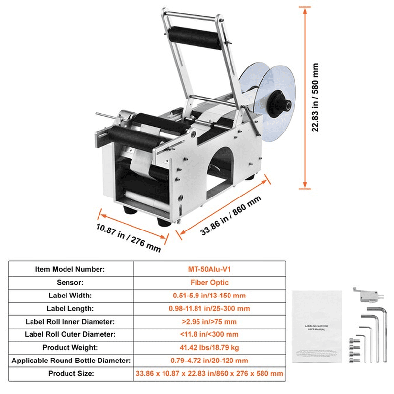 - This bottle labeling machine can accommodate various round bottle sizes ranging from 0.78-4.72 inches/20-120 mm, making it a versatile choice for multiple industries and product kinds, it’s your all-in-one labeling companion.