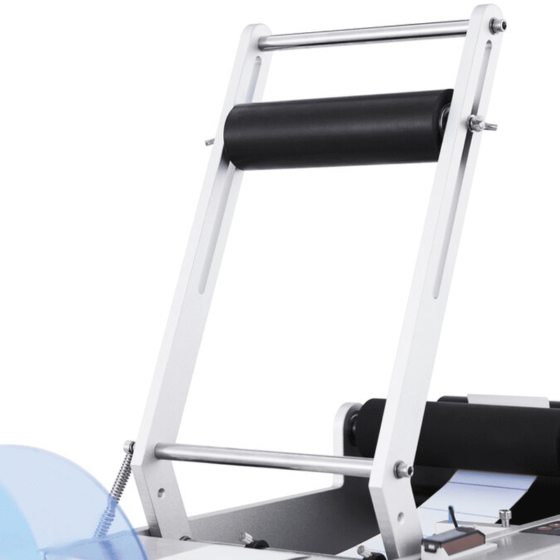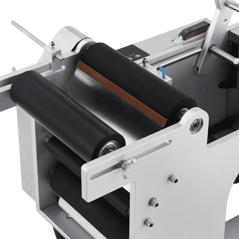 - The labeling machine is fitted with a round bottle press bar for precise label placement and comes with a rubber roller for smooth and bubble-free results.