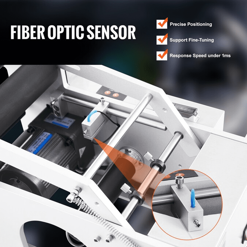- Our label applicator offers easy label changing – no wrenches required! The fiber optic sensor guarantees precise positioning and fast labeling; A security switch is included – one press to turn the machine on or off.