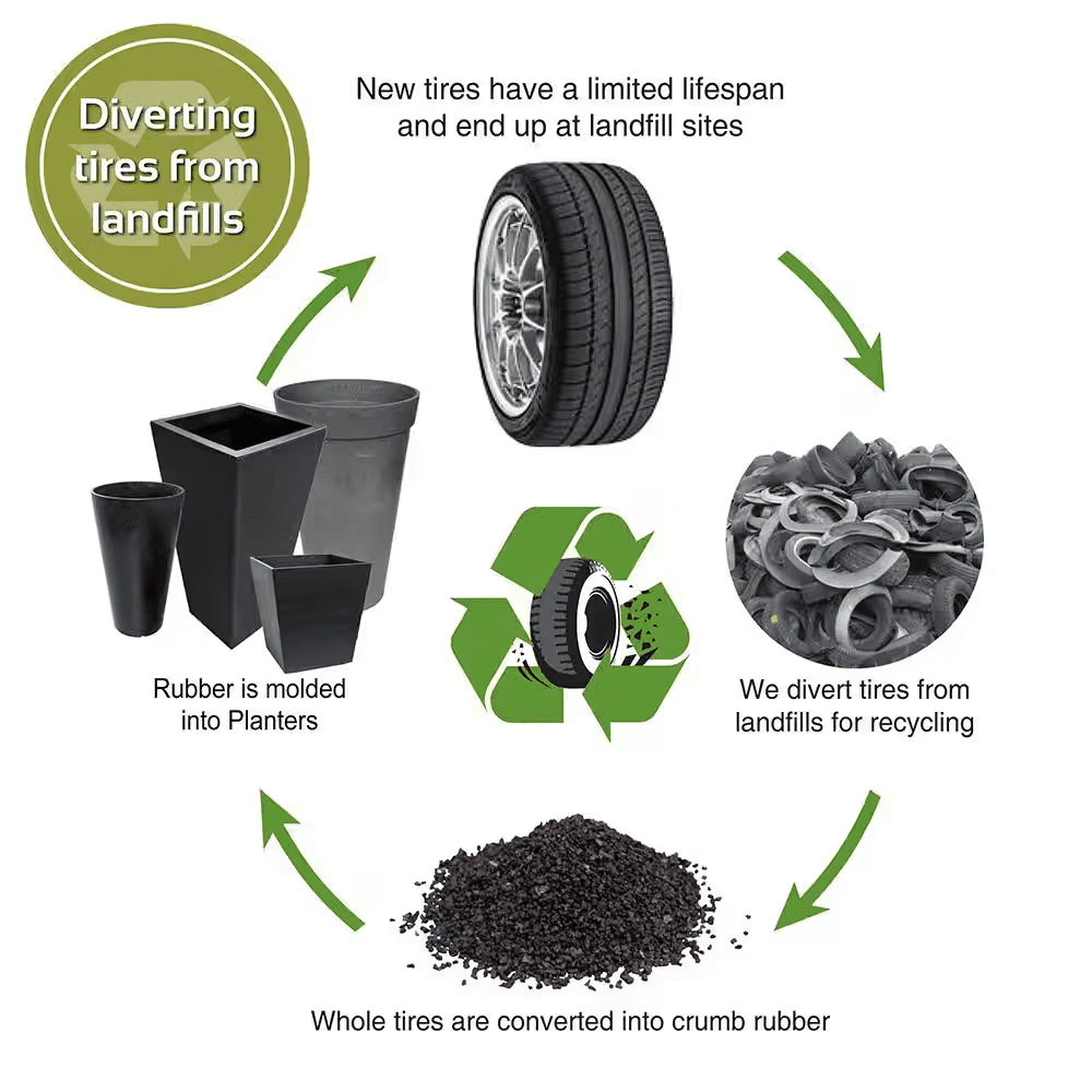 Dress up your patio, deck, balcony or any outdoor living space with this Tierra Verde self-watering, rubber planter. Made from 100% recycled rubber, these one-of-a-kind pots boast unbreakable with intended usage; they will not break, crack, or crumble even in freezing temperatures. Our self-watering planter has an elegant look while remaining an earth-friendly choice. The soil within the planter perches above a base water reservoir where the plant’s roots can stretch down out of the soil and into the water for nourishment, just what plants need for healthy, lush flowers and foliage. Not only do these planters conserve water, they are the perfect solution if you travel and have difficulty keeping up with the watering needs of your plants, and prevent root rot.