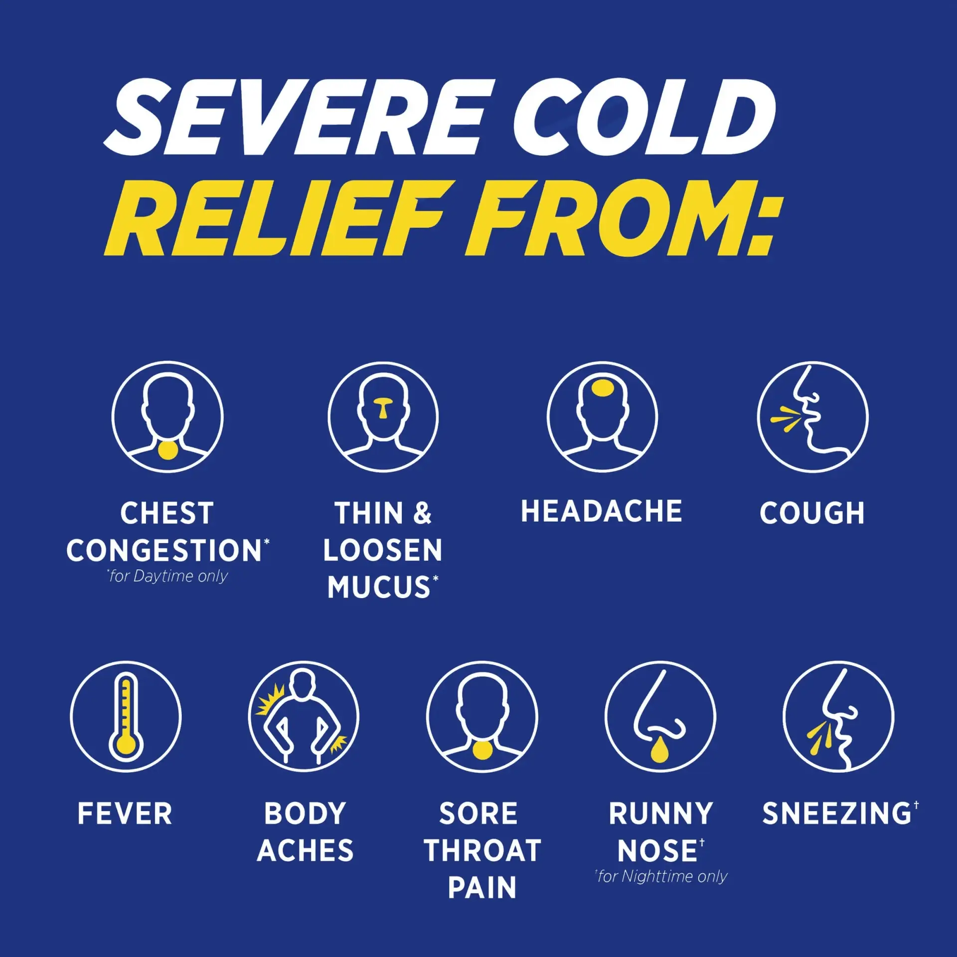 - Delivers powerful pain relief, headache relief and nasal congestion relief, along with relief from sore throat, fever and cough