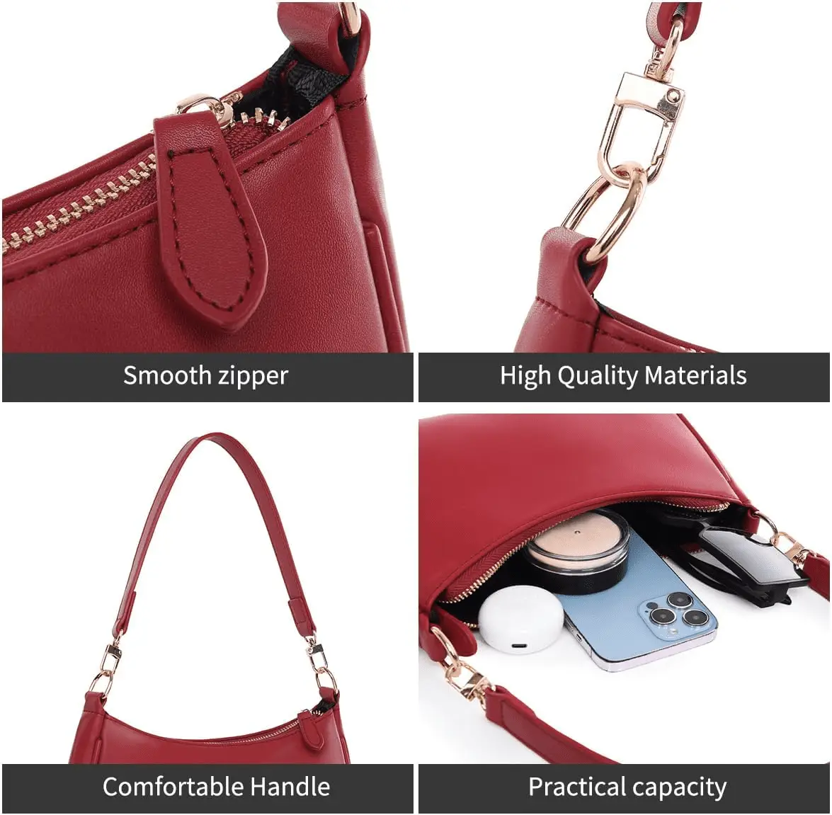 Shoulder Bag for Women with 2 Removable Straps and Zipper Closure Crossbody Bags Clutch Tote Handbags Purses