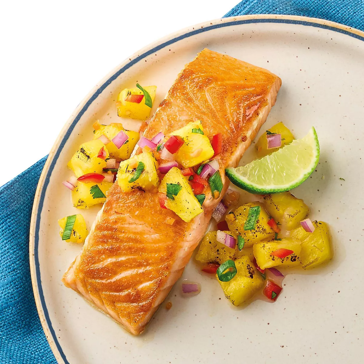 Whip up a quick, crowd-pleasing dinner for yourself or for two with this Skin-On Atlantic Salmon from Good & Gatherâ„¢. This 10-ounce pack includes two portions of Atlantic salmon. Easy to cook, you can pair it with anything from potatoes or rice to green beans and other veggies, and you can feel good about serving it since it has no artificial colors, flavors or preservatives.