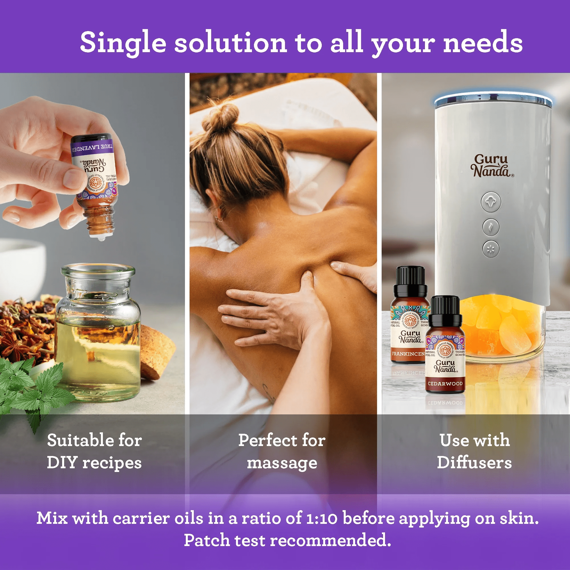 Stop stressing before resting with the GuruNanda Sleep Essential Oil 3 Pack. This collection of pure and natural essential oils is designed to help support relaxation and stress relief, promoting more restful nights. This pack includes calming cedarwood essential oil, relaxing lavender essential oil, and comforting frankincense essential oil. Together, these essential oils work like a lullaby to help you sleep more peacefully. For topical use, dilute with a carrier oil using a 1:10 ratio (1 drop of your favorite GuruNanda essential oil per ten drops of carrier oil). GuruNanda essential oils can also be diluted in a warm and comforting bath with a few drops of oil or made into a room spray by adding 20 drops to 5 oz. of water in a spray bottle. To diffuse, add a few drops of your favorite essential oil into a GuruNanda Aromatherapy Diffuser. Please note: Do not use essential oils directly on the skin without dilution. Do not apply directly to open wounds. Keep out of reach of children and animals. Store in a cool, dry space. Avoid sun exposure after application to the skin.