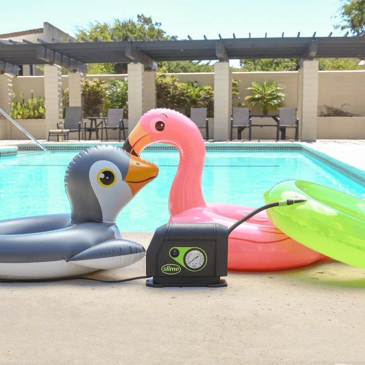 - Includes multi-purpose air adapters for rafts, balls and other inflatables