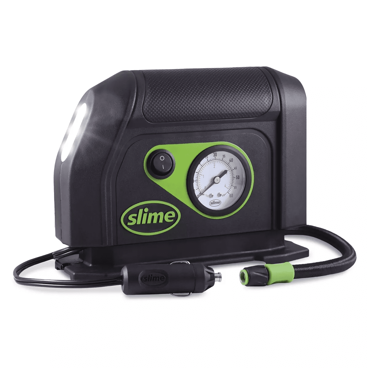 Slime’s 12V Tire Inflator is a lean, mean inflating machine. It has got the essentials, without any added bulk. It may be compact, but the tire inflator packs one heck of a punch. Slime’s 12V Tire Inflator also features 3 bright LEDs to light your way, when all other lights have gone out. With the flip of a switch, the inflator springs to life, easily airing up your car tires. It can also be used to inflate sports balls, rafts and floaties. Inflation time is 8 minutes.