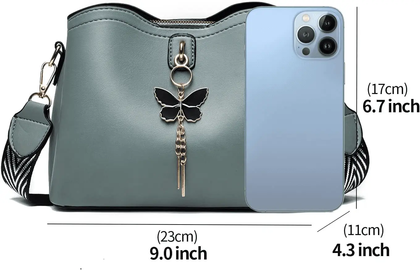 This crossbody bag has beautiful butterfly decoration and looks beautiful and elegant. It is lightweight and suitable for daily work, shopping, and dating. It is also fashionable. Its size is not too big, not too small, and it is a perfect size for your small belongings. It is a perfect gift for you and your friends.