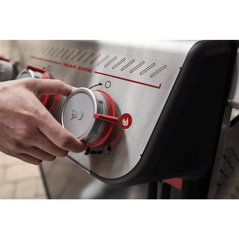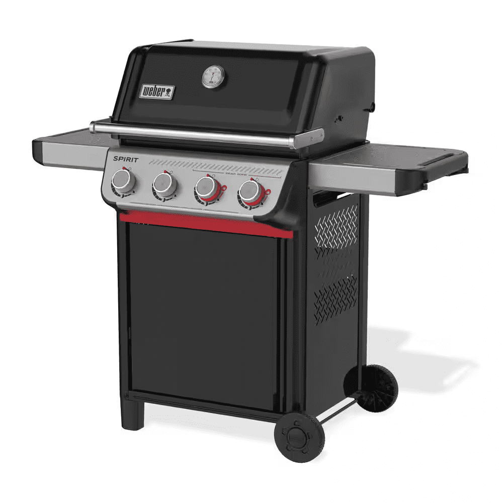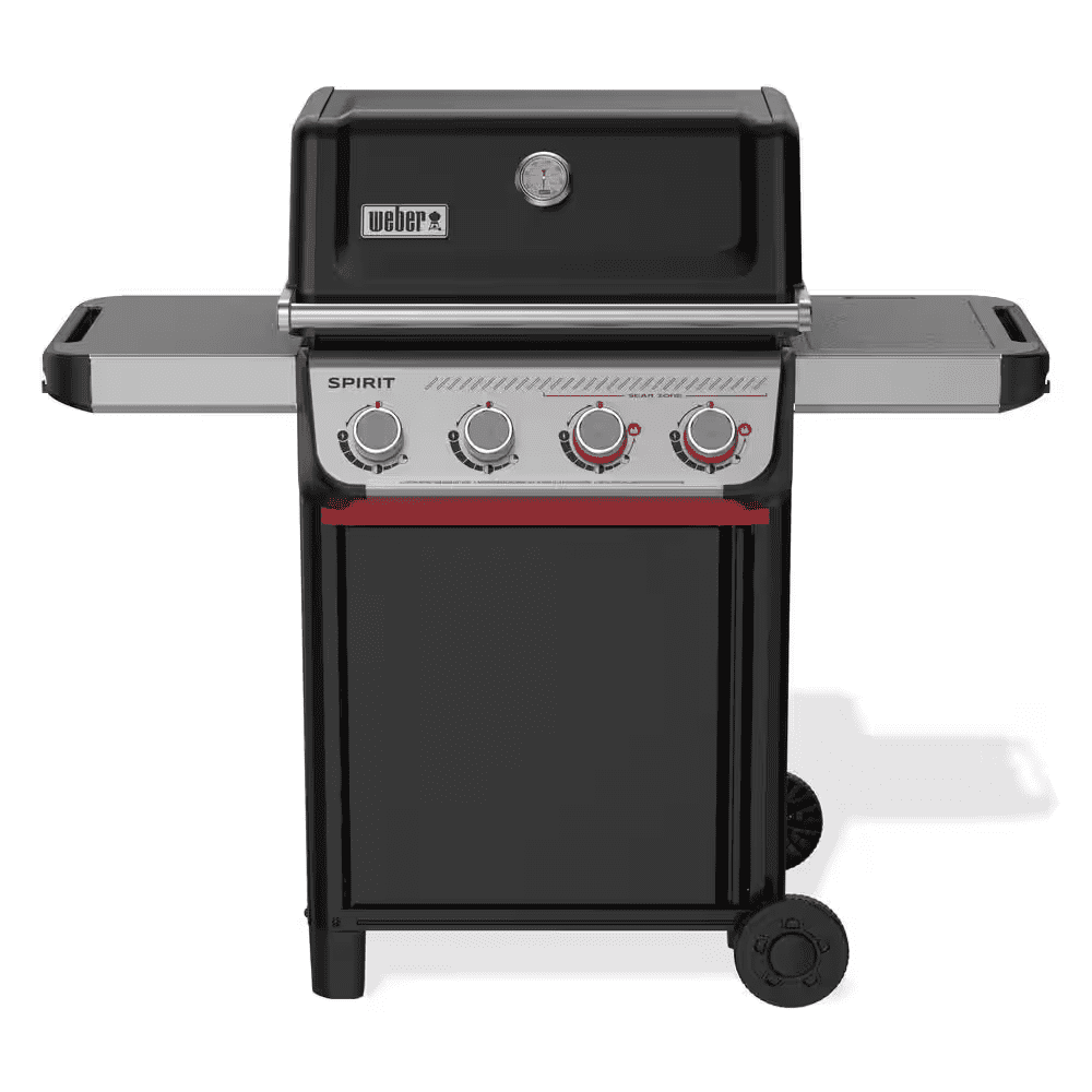 Grill delicious food on the reinvented 4-burner Spirit SC-E-425 gas grill. This Home Depot Exclusive includes a Weber Crafted Frame and Weber Crafted Rust-Resistant Griddle. Transform your propane grill into an outdoor griddle; simply pull out the grates and drop in the griddle insert to sizzle bacon, smashed burgers, fajitas, and more. 2 red Boost Burner knobs unleash 40% more power in the Sear Zone. Ignite each individual burner with one hand with Snap-Jet Ignition and control heat precisely with a full range of temperatures. The Grease Management System has a large drip pan and removable grease tray for easy cleaning. Outdoor gas grill also has a cabinet with a door and durable, all-weather wheels. Liquid Propane tank sold separately.